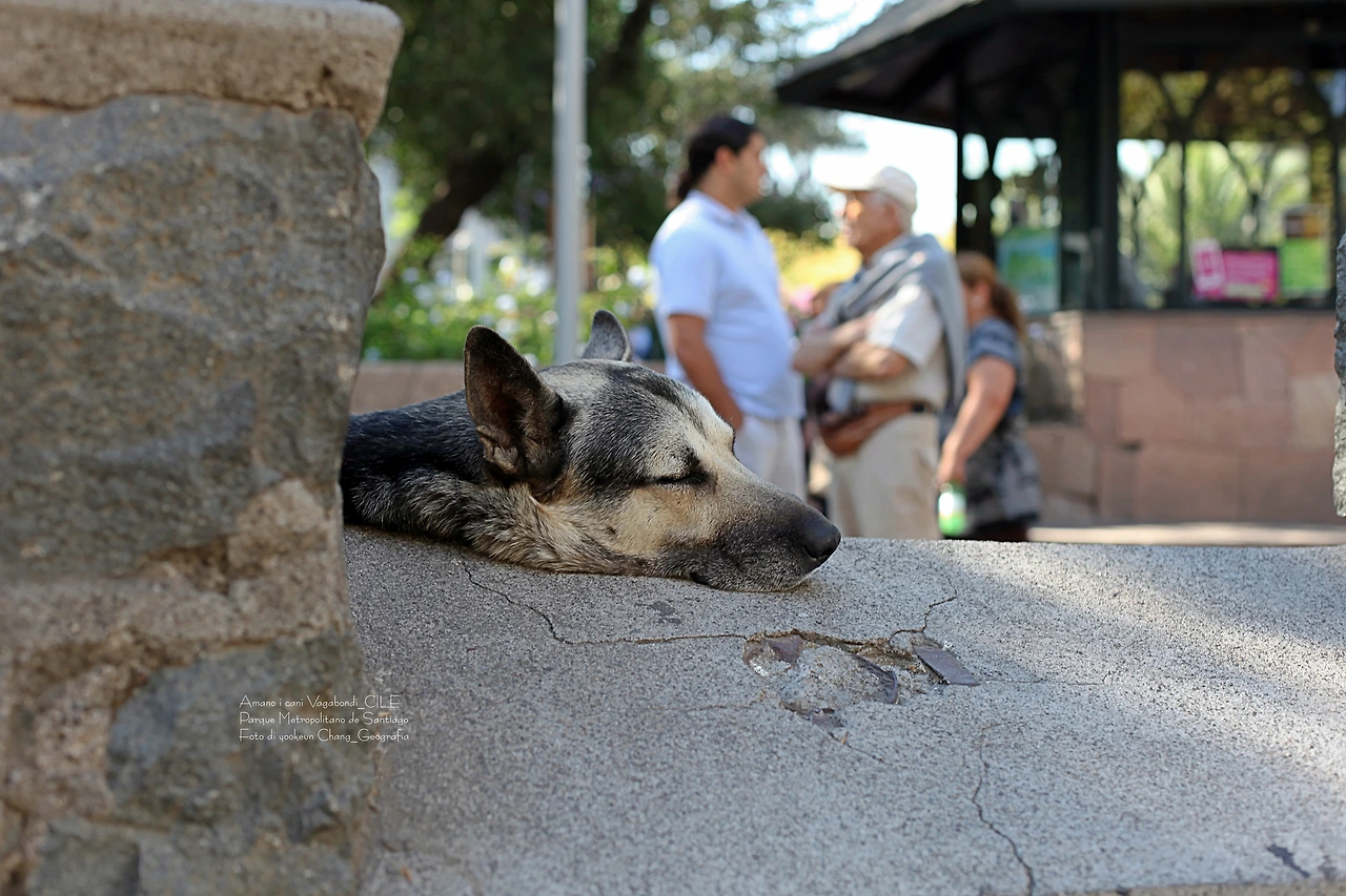 우리는 파타고니아 투어가 끝난 후 칠레의 수도 산티아고에 머무는 동안 매일 아침 숙소에서 가까운 공원(Parque Metropolitano de Santiago)으로 산책을 다녔다. 그곳은 산티아고의 시민들이 자주 찾는 곳이자 산티아고 들른 관광객들이 주로 이용하는 공원이었다. 공원 입구에는 공원 정상(Cerro san Cristobal)으로 이어지는 엘리베이터 후니쿨리 후니쿨라(Funiculi Funicula_나폴리 민요에 등장하는 이름)가 설치되어 있었는데 관광객들은 주로 이곳을 출입했다. 따라서 구걸에 나선 떠돌이 개들은 주로 사람들이 많이 몰려드는 곳을 찾아 얼씬거렸다.