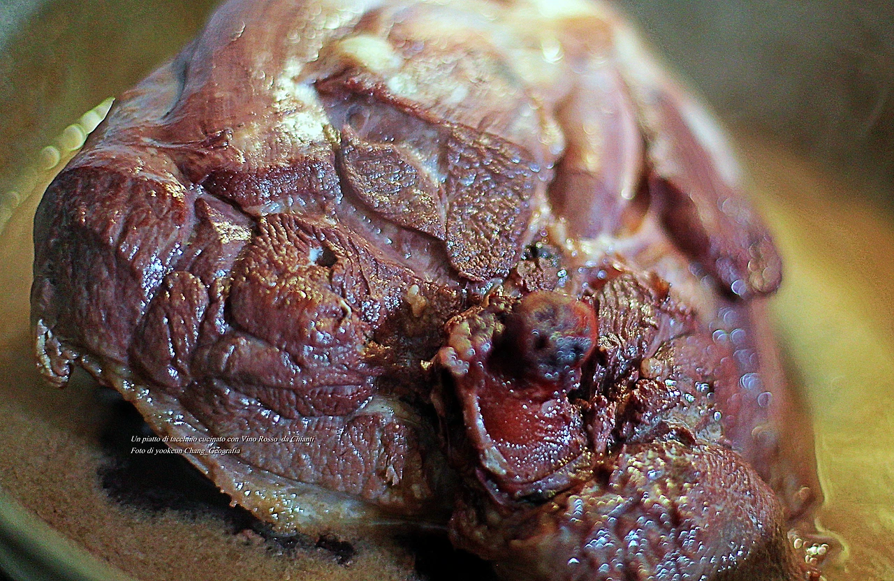 토스카나 주의 양조 역사에 따르면, 기원전 8세기경, 에트루리아(Etruria) 정착민들의 삶으로 거슬러 올라간다. 포도주를 보관하던 암포라(Amphora, Anfora) 항아리 유물이 발견된 곳이다. 아무튼 이 지역은 지중해성 기후와 토양 등이 잘 어우러져 질 좋은 포도주를 생산하는 것이다. 따라서 포도주를 물 쓰듯 하는 것이다. 그 전통으로 송아지 고기가 적포도주에 조려져 까맣게 변한 것이다. 담백한 송아지 고기 맛이 일품이었다. 따라서 합석한 셰프에게 리체타를 물어보지 않을 수 없었다.