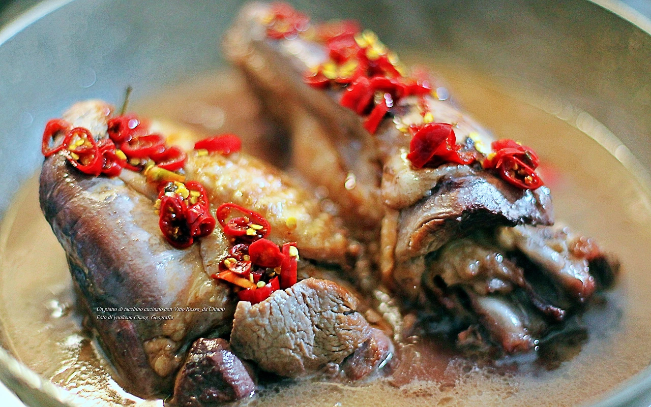Un piatto di tacchino cucinato con Vino Rosso_da Chianti