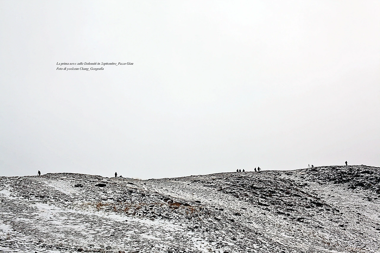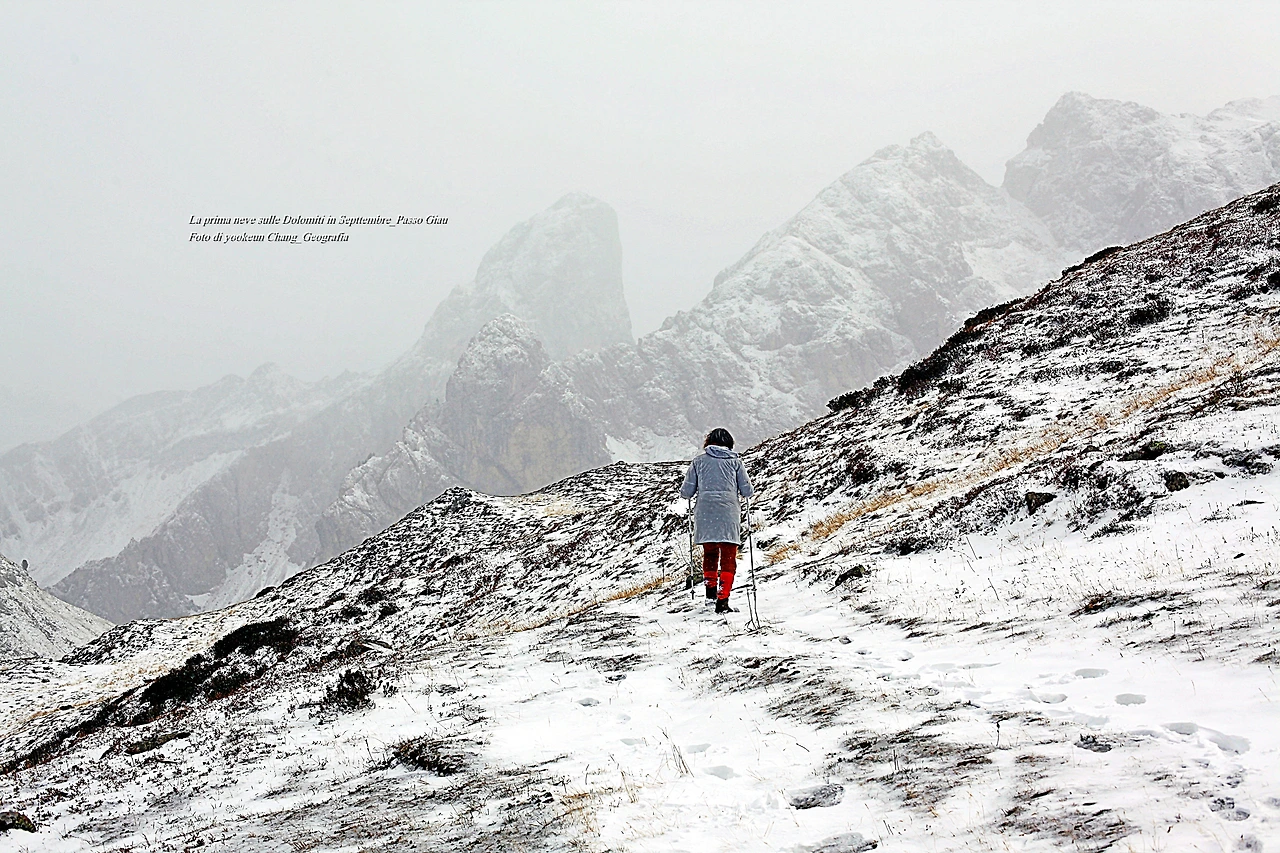 서기 2020년 12월 13일, 이른 새벽에 일어나 브런치를 돌아보고 있던 중 서울에 첫눈이 오셨다는 소식을 듣게 되었다. 그런 즉시 나는 우리가 맞이했던 돌로미티의 첫눈을 단박에 상기하며 컴 앞에서 자판을 매만지고 있는 것이다. 서울에 내린 첫눈은 여러분들을 설레게 하고 있었다.