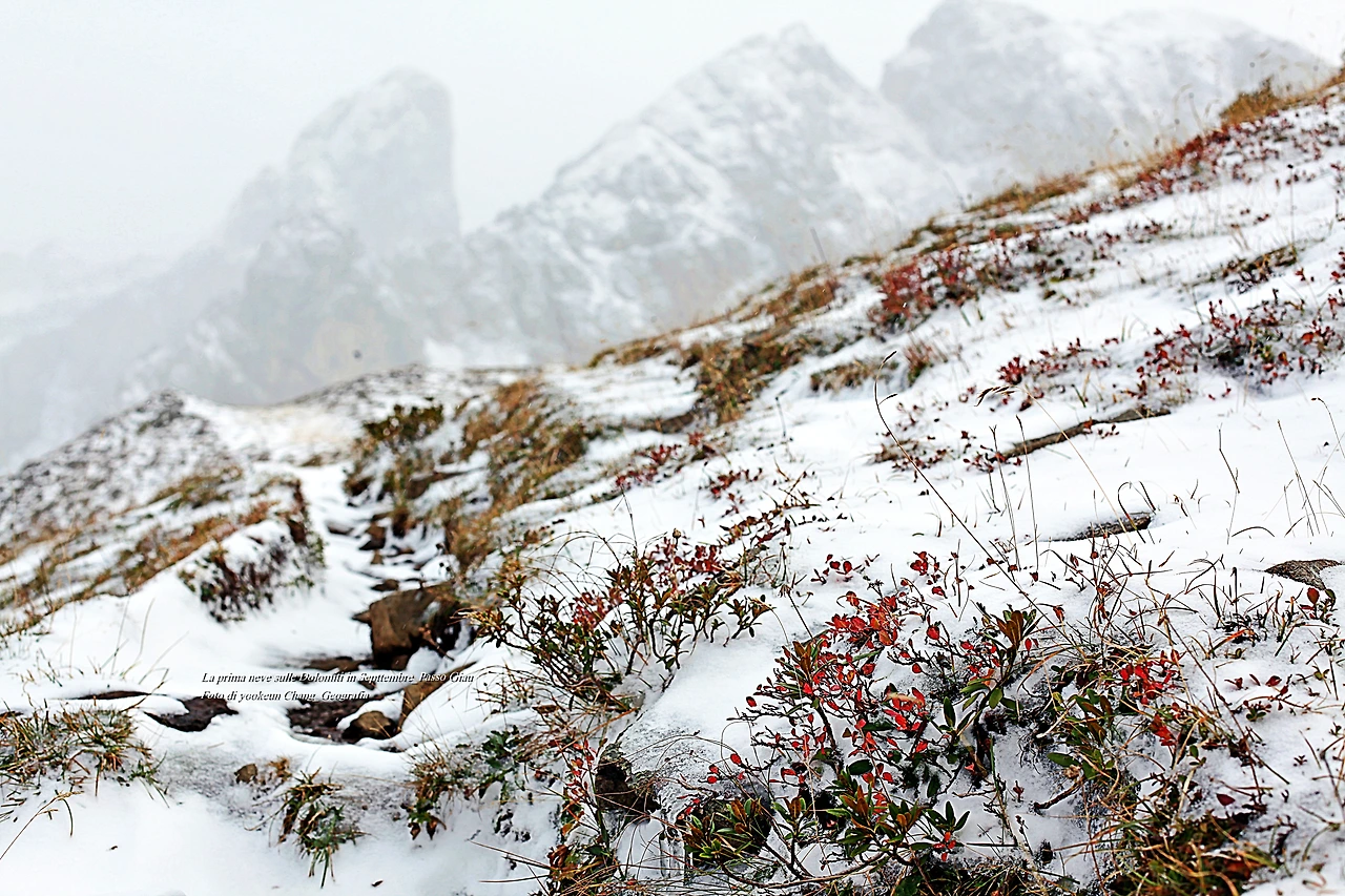 첫눈의 마법은 돌로미티에서 살아가고 있었던 풀꽃을 살포시 덮으며 시간여행을 재촉하고 있었다. 이곳은 9월이 오시면 이미 겨울나라로 접어드는 것인지 짧은 시간 동안 부지런히 꽃을 피웠건만 먼 길을 떠나야 하는 운명의 날을 맞이한 것이다. 미치도록 아름답고 애잔한 풍경이 돌로미티의 한 고갯마루에 펼쳐지고 있었다.