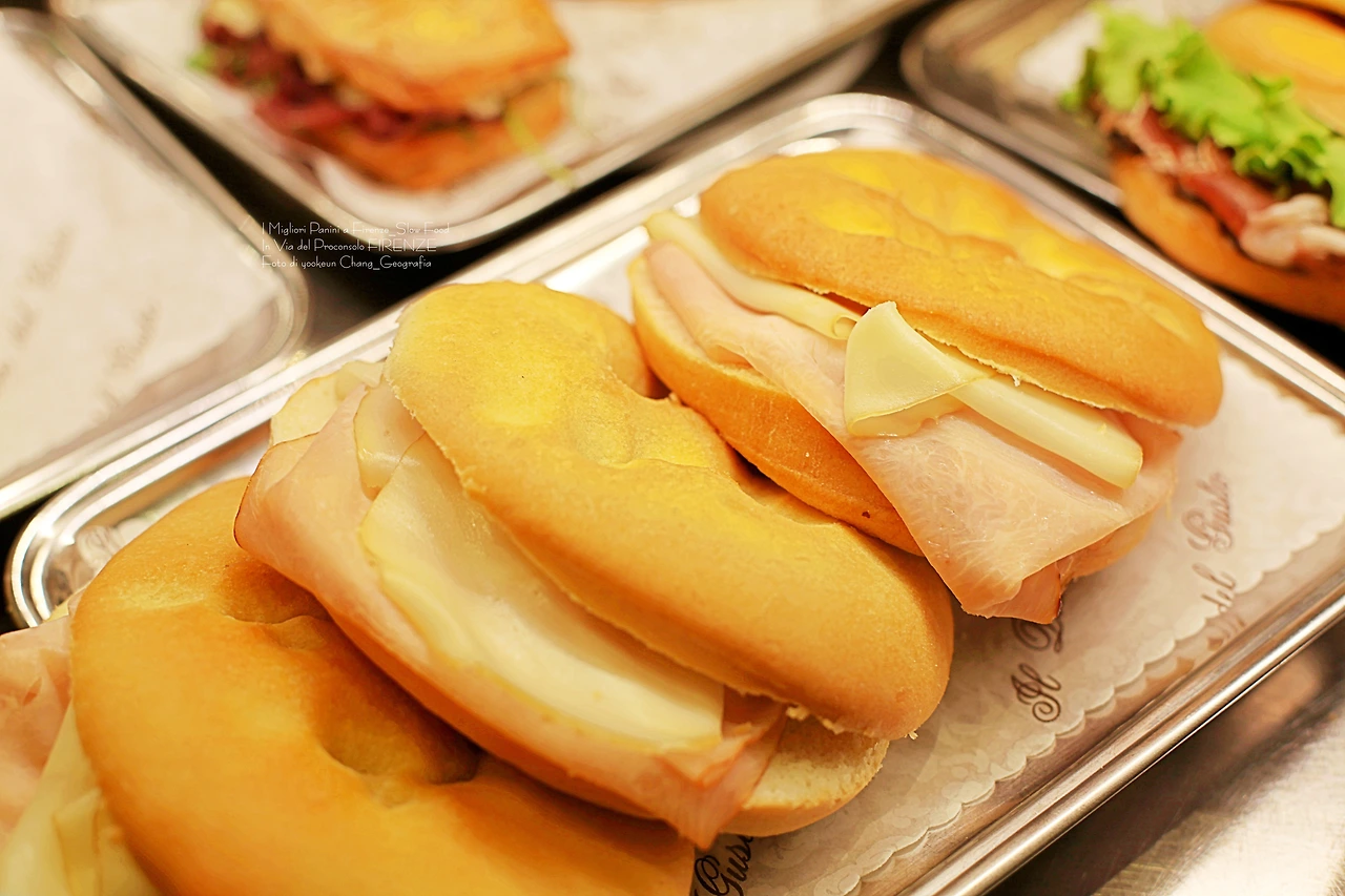 위 자료사진은 피렌체 중심가 두오모 근처에 위치한 한 카페 진열장에 전시된 빠니니의 모습이다. 이날 촬영된 사진은 두 곳으로 피렌체를 찾은 관광객들로부터 인기를 누리는 곳. 사람들이 줄지어 빠니니(Panini di firenze)를 기다린다. 빠니니는 자른 빵 틈 사이에 치즈, 야채, 햄 등의 식재료를 간단하게 넣어 만든 이탈리아식 샌드위치를 말한다.