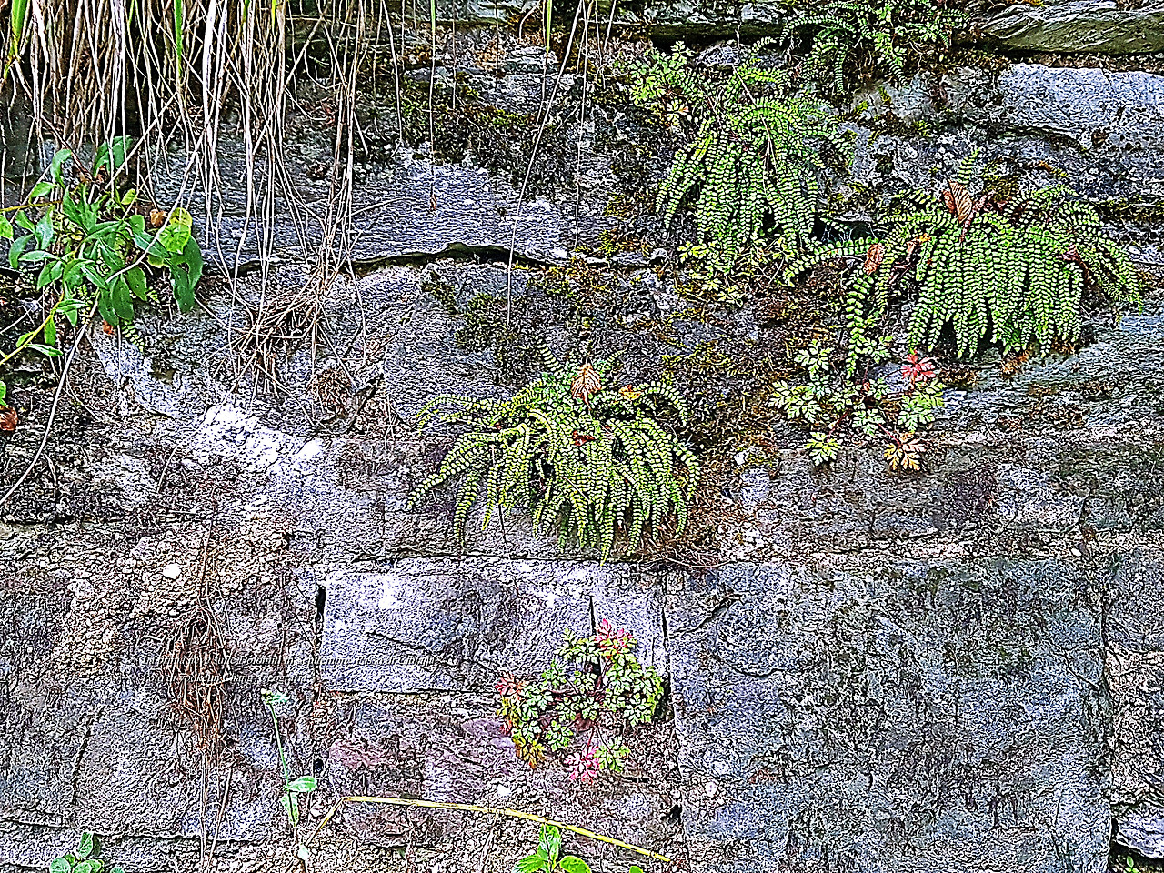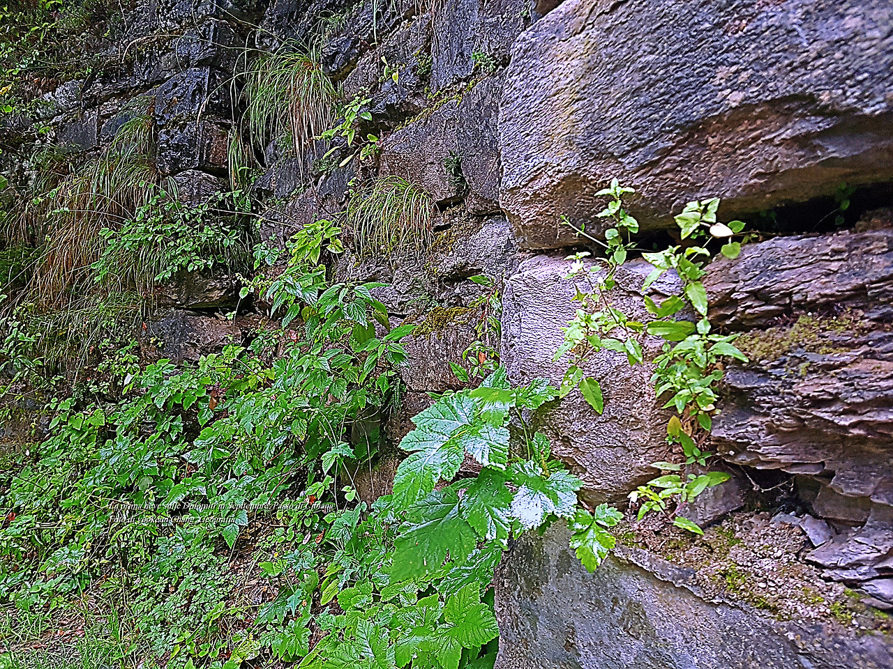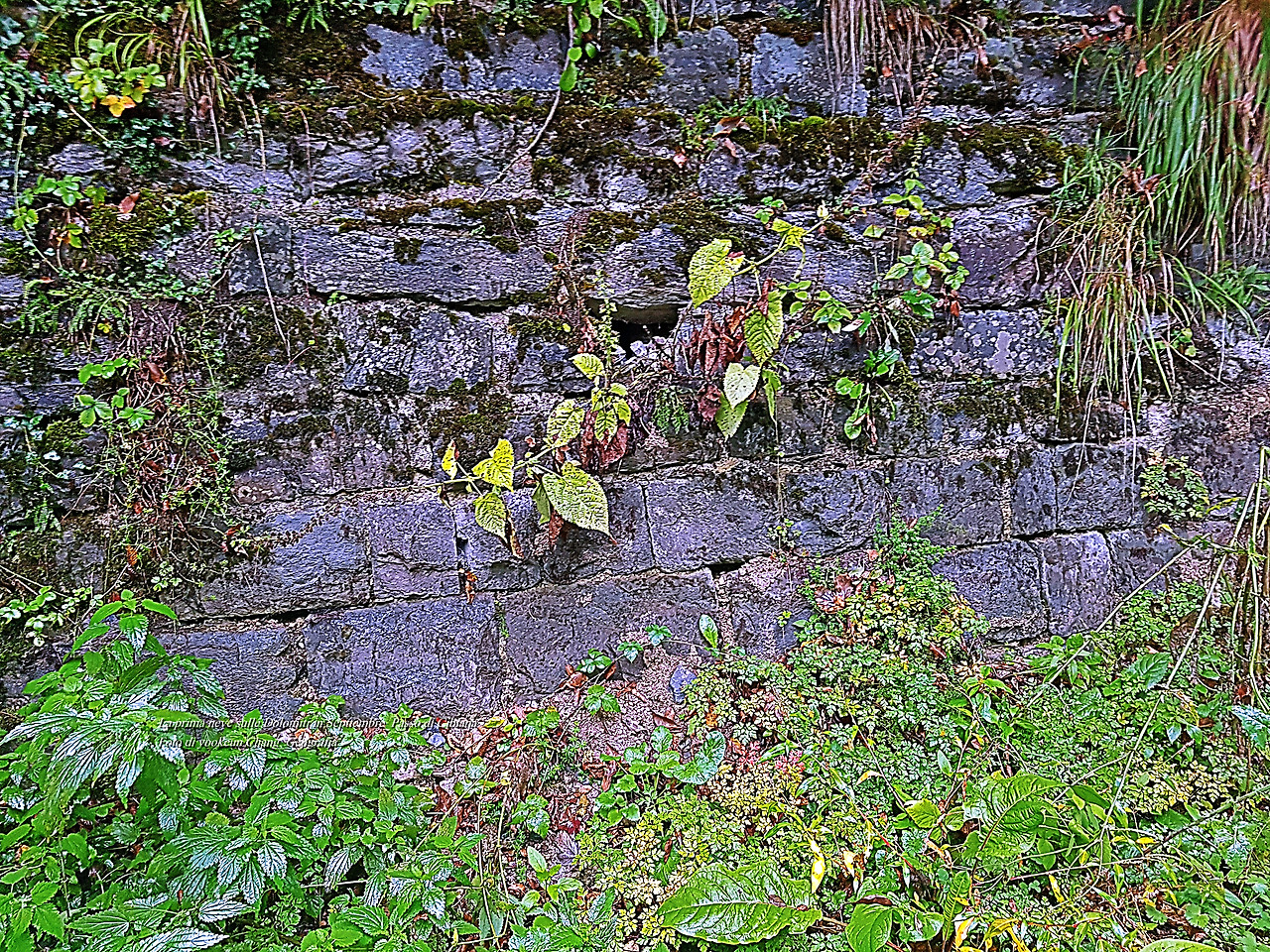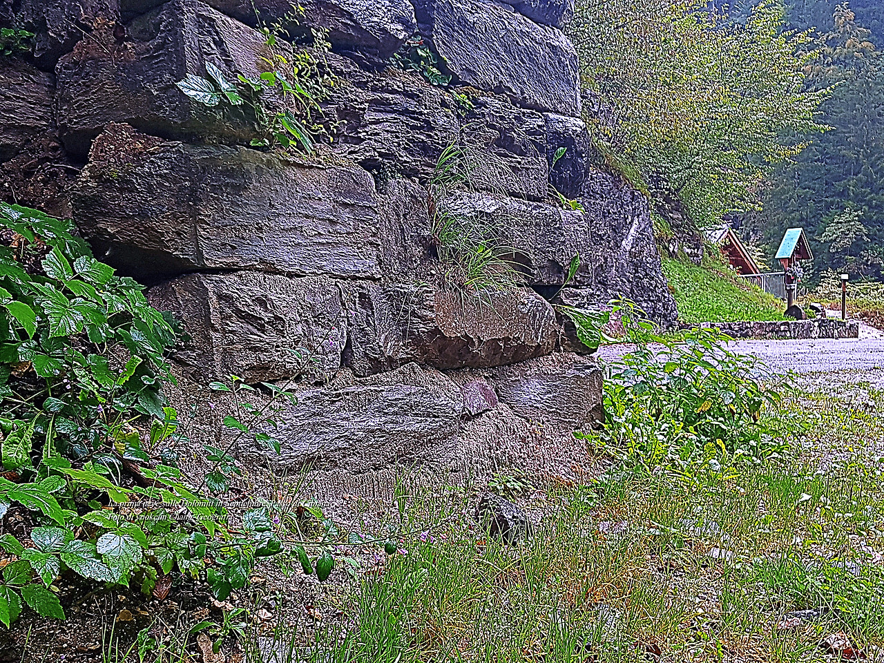 터널 곁에서 비를 맞고 있는 잡초들이 석축과 어우러져 기분 좋은 질감을 만들어냈다.