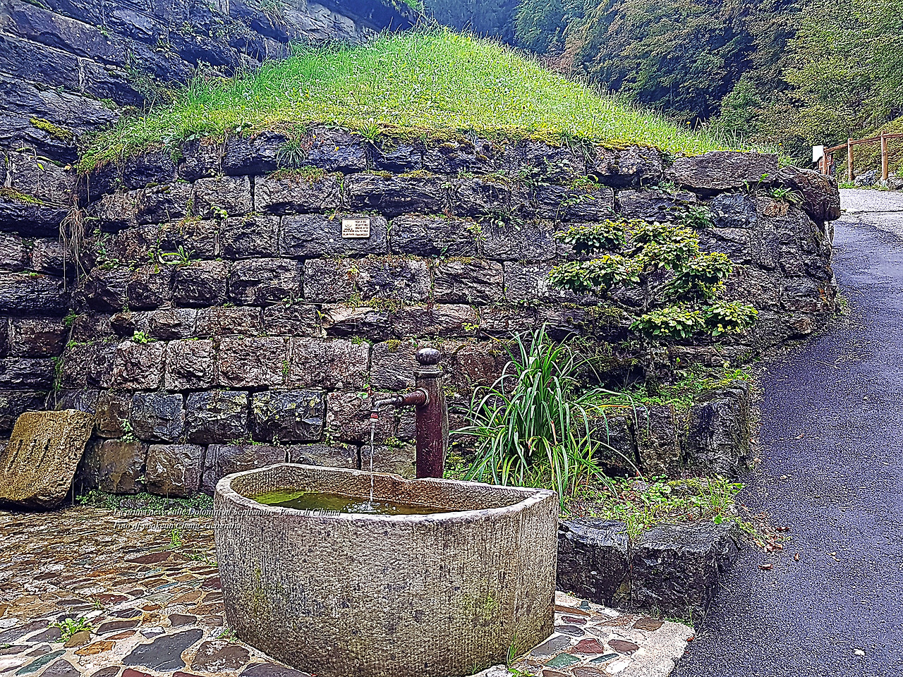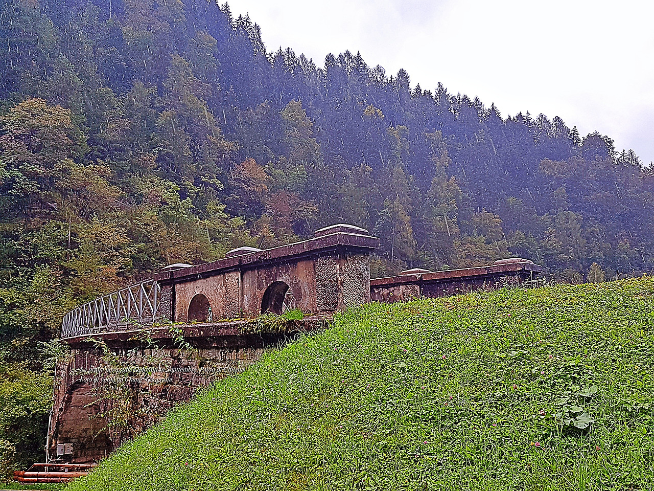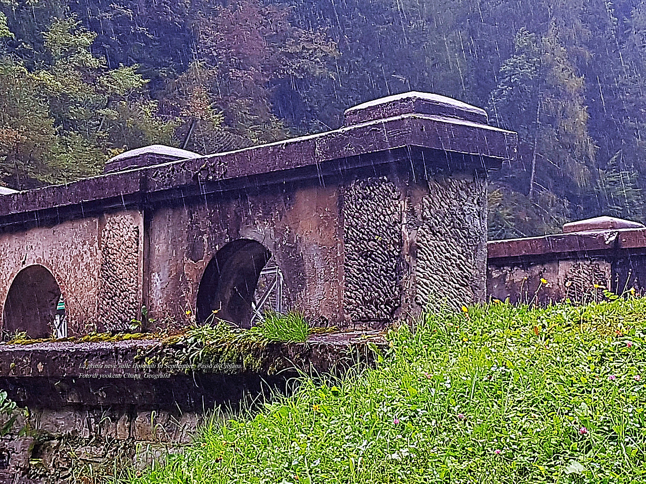 그리고 다음 날 비가 개일 것 같았지만 여전히 비가 오락가락하며 시꺼먼 구름들이 산등성이를 넘나들고 있었다. 그런 잠시 후 우리는 치비아나 디 까도레(Cibiana di Cadore)로 이어지는 국도변의 굴다리(눈여겨봐 두시기 바란다) 아래에 자동차를 주차해 두고 차콕하며 쉬고 있었다. 그곳은 잠시 비를 피하기 쉬운 곳일 뿐만 아니라 곁에 맑은 물이 쉼 없이 흐르는 수도꼭지가 있었다. 컵으로 물을 받아 마시니 한 순간에 속이 말갛게 변하는 것. 하니가 차콕을 하는 동안 나는 주변을 둘러보기로 했다.