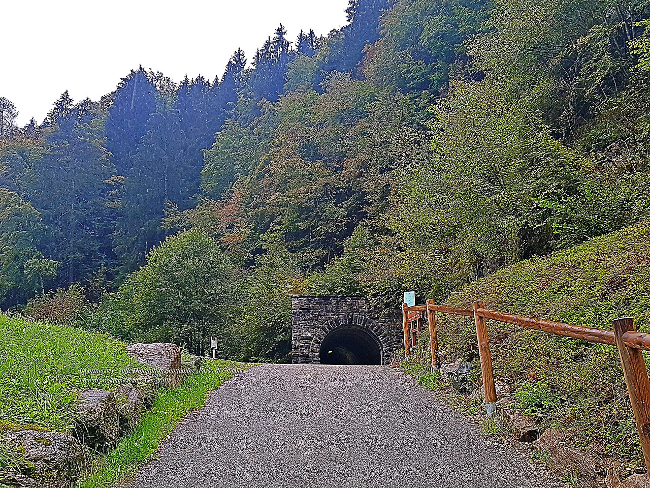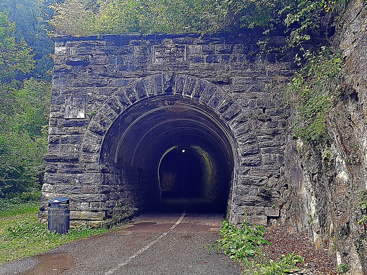 산책로는 깨끗이 잘 정비되어 있었다. 터널 입구를 올려다보니 터널이 준공된 년도가 표시되어 있었다. 1919년.. 하필이면 아버지께서 태어나신 해에 이 철로가 완성되었던 것이다. 1919년은 기미년으로 3월 1일부터 한반도 전역에서 일어난 독립운동이 시작된 날이다. 우리가 일제 강점기 속에서 지낼 때 아버지께서 태어나셨고 그해 이탈리아의 어느 골짜기에서는 철로가 완성된 것이다.