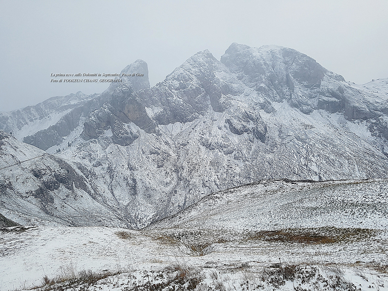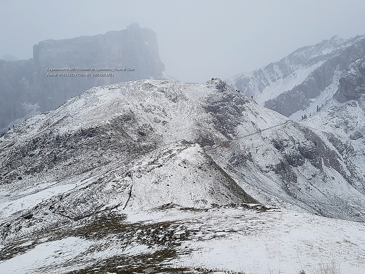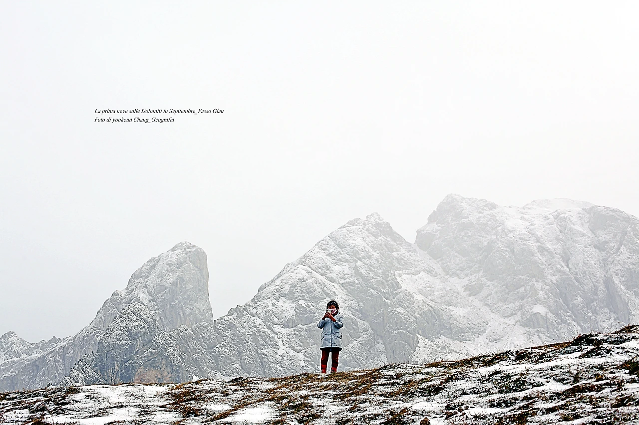 지난 여정 꽃이 된 그녀와 깨시민 편 끄트머리에 이렇게 썼다. 내 조국 대한민국이 힘들어할 때 먼 나라에서 작은 응원이라도 보내고 싶었다. 그곳은 여전히 형제자매들과 아이들과 코로나 19를 피해 한국으로 잠시 피신해 있는 하니가 살고 있는 곳이자, 민주시민들과 이웃들이 날마다 이부자리를 개는 정겨운 곳. 그곳을 어찌 잊으리오.. 하니와 나는 어느 날 돌로미티에 내리고 있는 첫눈을 쫓아 마침내 빠쏘 디 지아우 고갯마루의 능선에 선 것이다. 그곳은 19박 20일 여정의 돌로미티 여행을 마무리할 때쯤 만난 절경이 펼쳐진 곳이다.