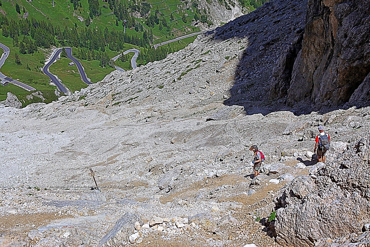 지난 여정 코로나 물러서면 재연될 풍경 편 끄트머리에 이렇게 썼다. 돌로미티 알타 바디아에 위치한 리푸지오 삐쉬아두 하산길에 잠시 우리의 여정을 둘러본 것이다. 그곳에는 우리가 이곳을 오르기 직전 쉼터의 모습을 담으며 돌로미티를 여행하고자 하시는 분들에게 경험 일부를 털어놨다. 아마도 적지 않은 분들이 코로나가 사그라들면 돌로미티로 떠나실 분들이 적지않은 것이다. 자주 떠날 수 없는 여행지이자 먼 길이므로, 준비를 철저히 하셔서 평생 아름다운 추억이 가슴에서 지워지지 말았으면 하는 노파심이 발동했다. 다시 하산길을 이어간다.