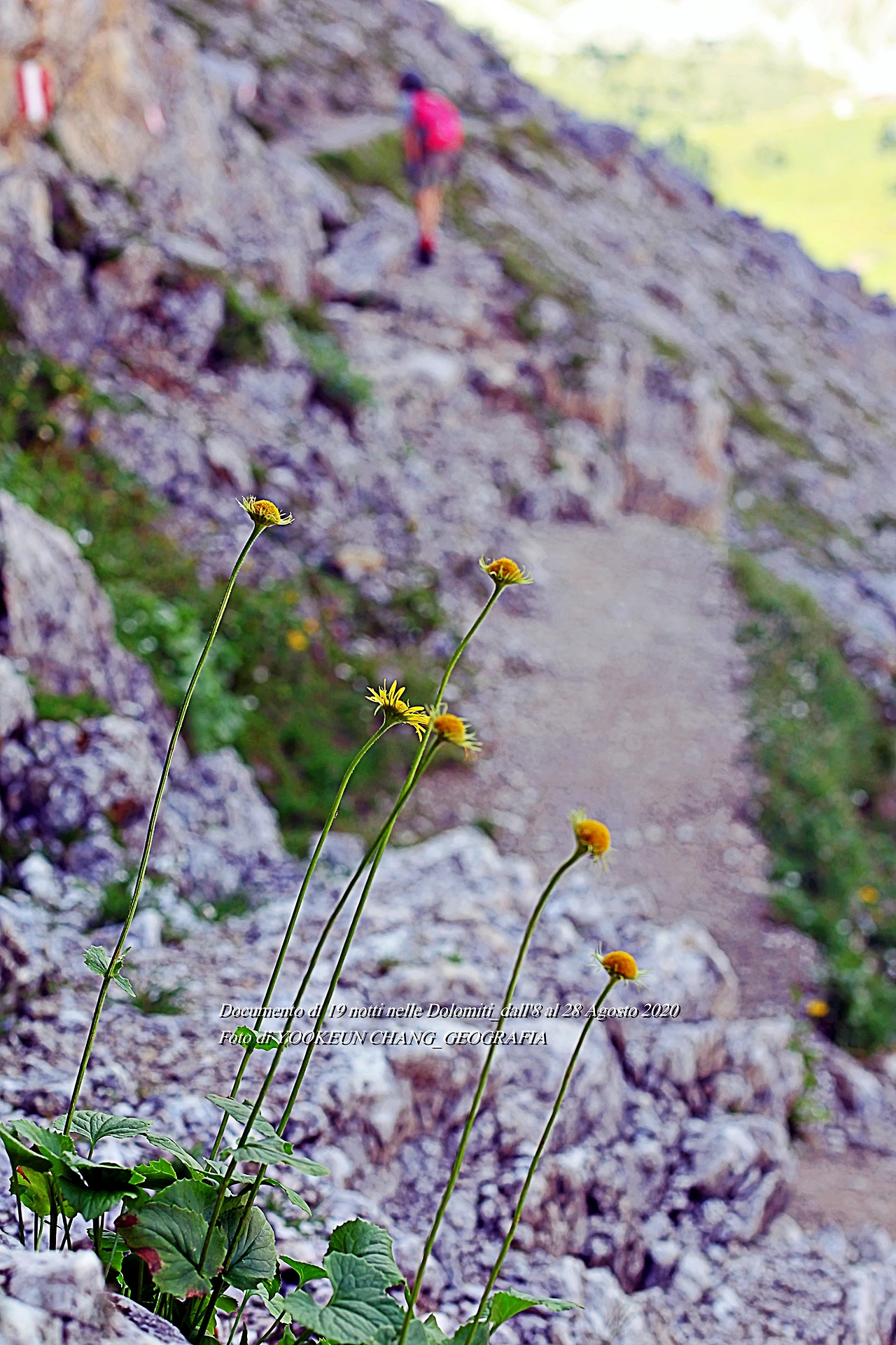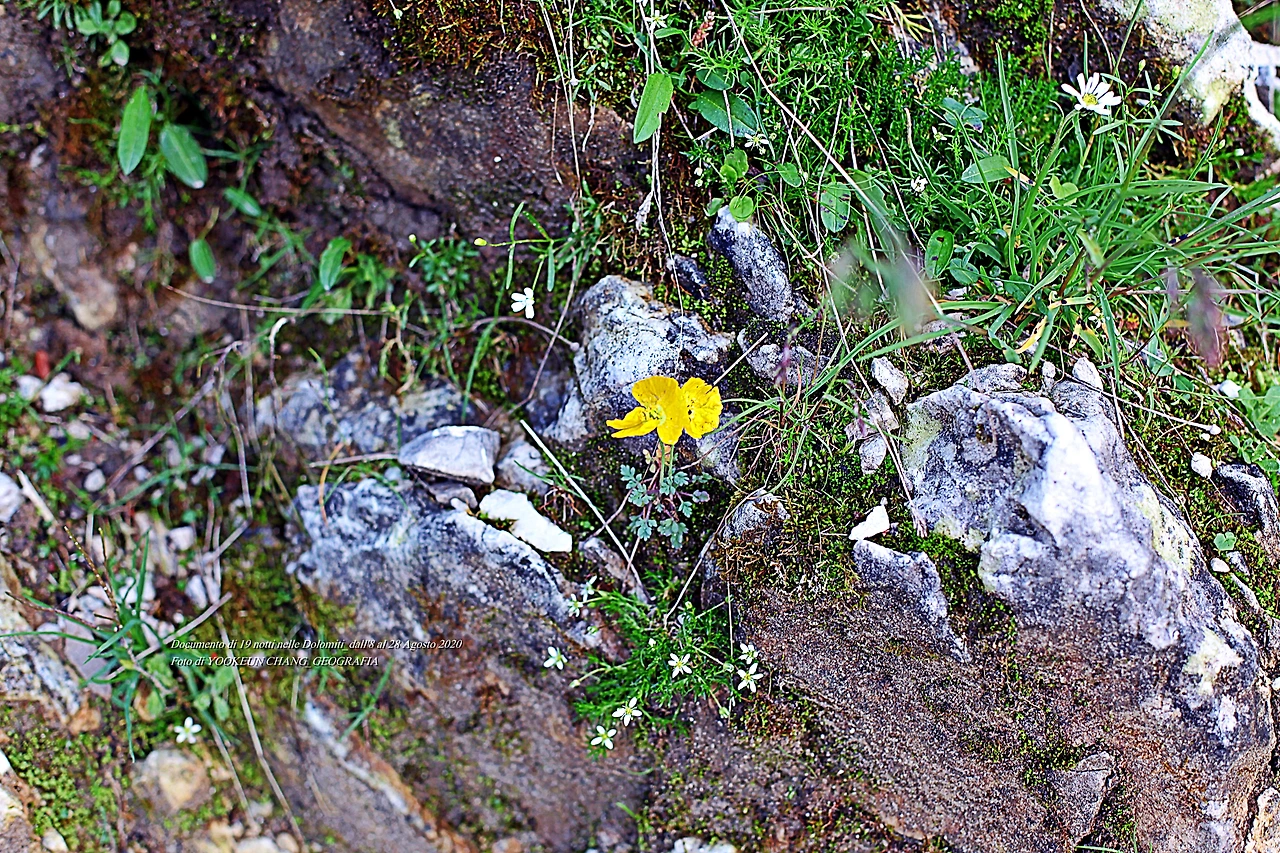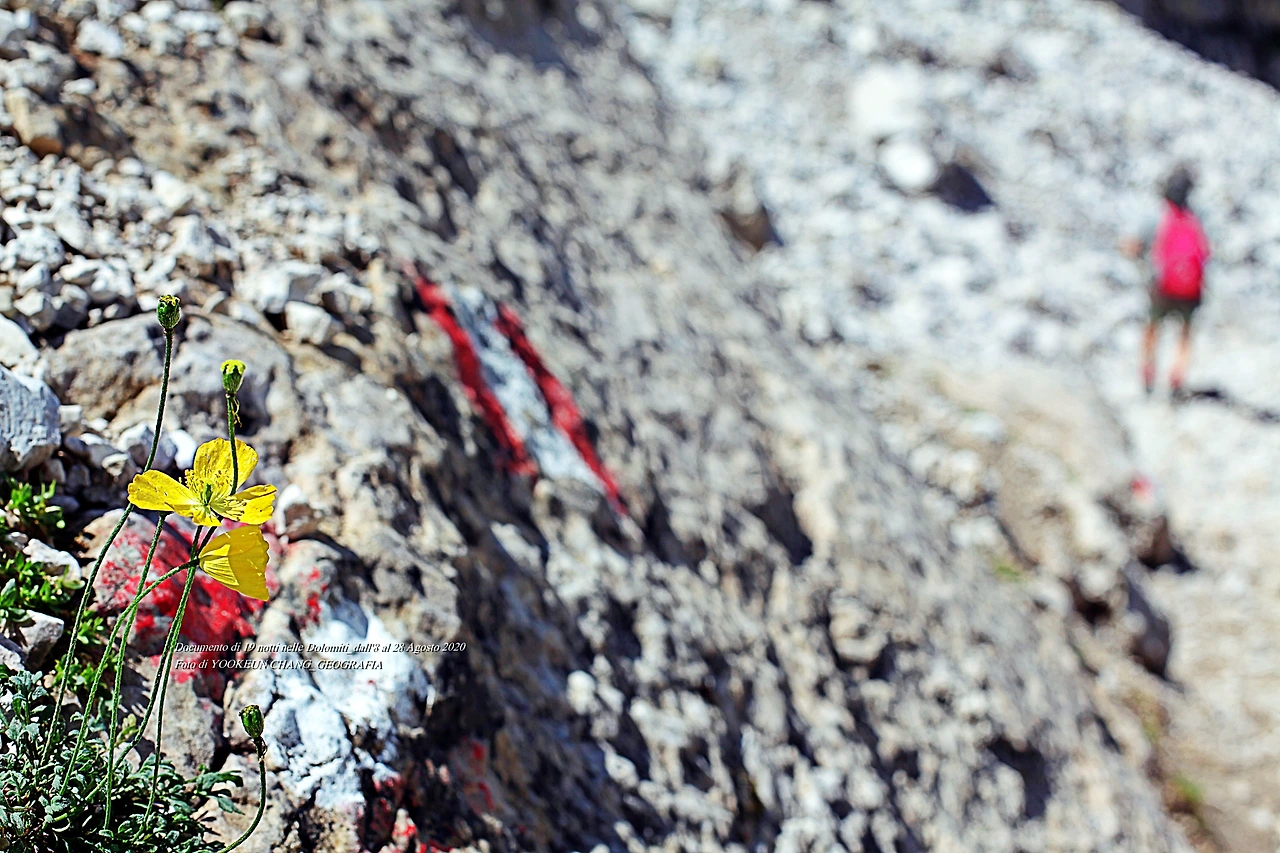 아직 산기슭을 돌아가려면 부지런히 발품을 팔아야 한다. 우리가 사서 하는 고생길.. 하산길에 다시 돌로미티 노랑꽃양귀비 서식지를 지나치고 있었다. 그리고 이때부터 꽃길이 이어지면서 돌로미티의 요정들이 배웅을 나섰다. 곳곳에서 풀꽃들이 손을 흔들며 인사를 건네고 있는 게 아닌가..