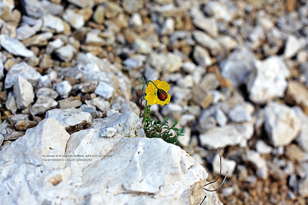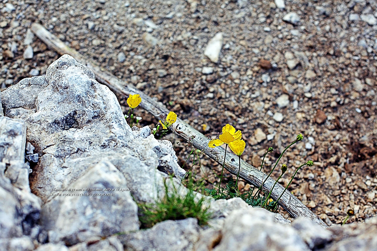 하니가 내려놓은 나무 작대기 옆에도 돌로미티 노랑꽃양귀비가 얼굴을 내밀고 인사를 건넨다.