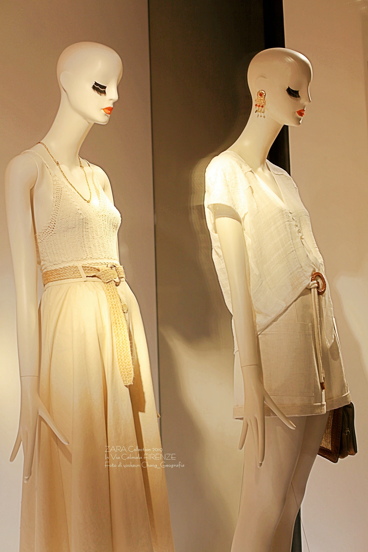이탈리아 혹은 피렌체를 빛나게 하는 것들 중에는 의류는 물론 요리, 가죽 공예, 건축, 악세사리 등 다양한 예술품들이 르네상스를 빛낸 예술가들과 머리를 맞대고 있는 것. 이들을 카테고리로 나누어 보면 패션, 요리, 르네상스의 유산 등으로 나눌 수 있겠다. 오늘은 첫번째 시간으로 이틀 전 피렌체 시내 중심 진열장에서 만난 사라의 신상품(ZARA collection 19_Nuova moda)을 만나본다. 한국에서 패션업을 하시는 분들 혹은 이탈리아산 의류에 관심이 있으신 분들은 눈여겨 봐 두시면 좋을 듯 싶다.