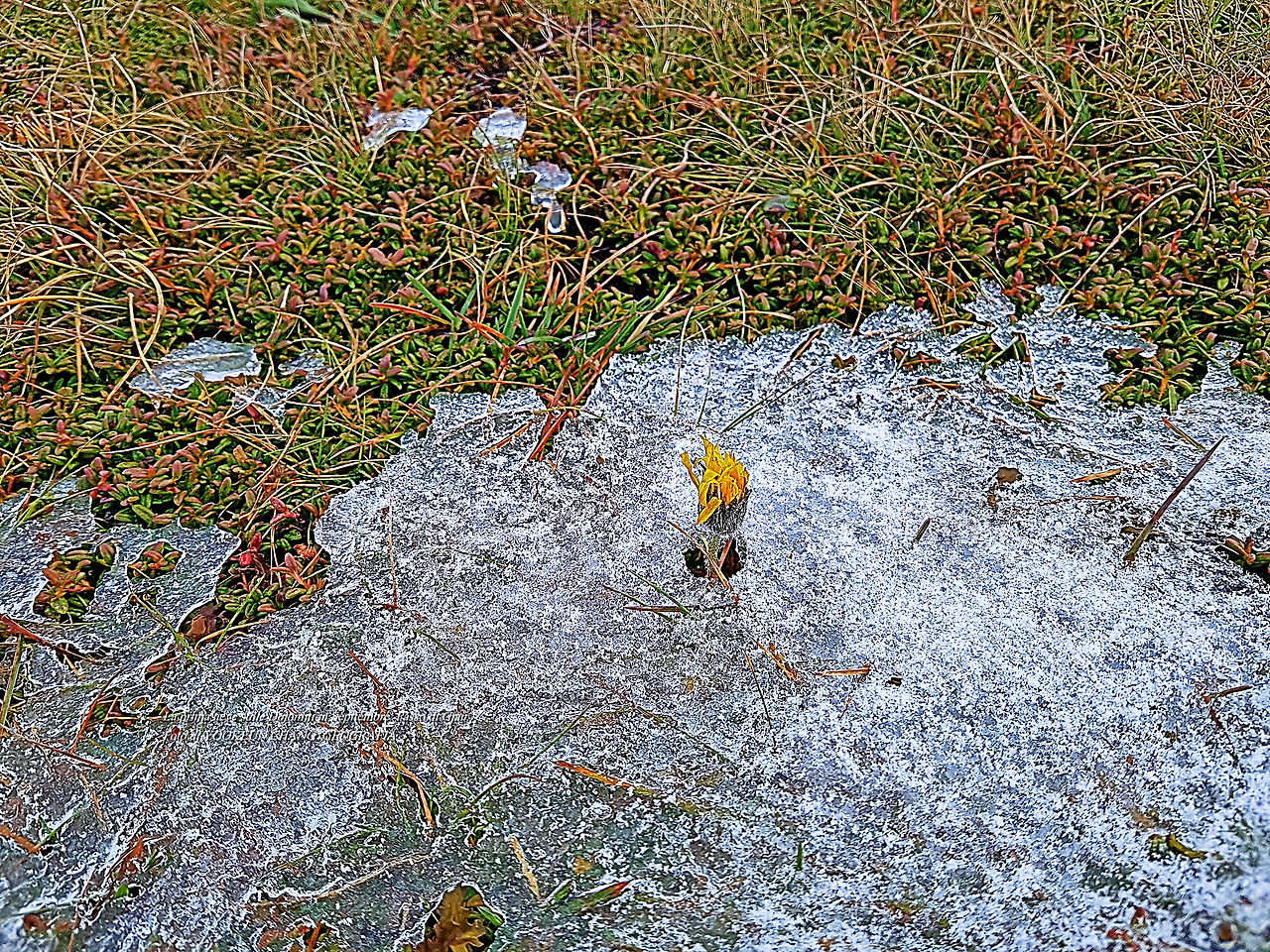 시간을 지내놓고 보니 그때 이미 시간은 내 가슴속에서 멈추어버렸던 것이다. 첫눈에 덮인 풀꽃들도 그런 생각을 했을까.. 첫눈이 내린 세상을 두리번거리는 앙증맞은 꽃 한 송이가 얼굴을 빼꼼히 내밀었다.