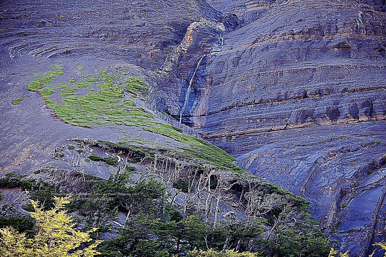 켜켜이 쌓인 시간의 박물관.. 거대한 바위의 퇴적층 위로 만년설이 녹아 작은 폭포를 이루며 수직의 강을 연출하고 있는 곳. 조물주는 인간을 흙으로 만들고 생기를 코에 불어넣어 영혼(영靈과 혼魂을 따지지 말자)을 가진 생명체를 만들었다고 한다. 그래서 호흡이 멈추는 날이면 혼은 흩어지고 육신은 필경 흙으로 돌아갈 테지..