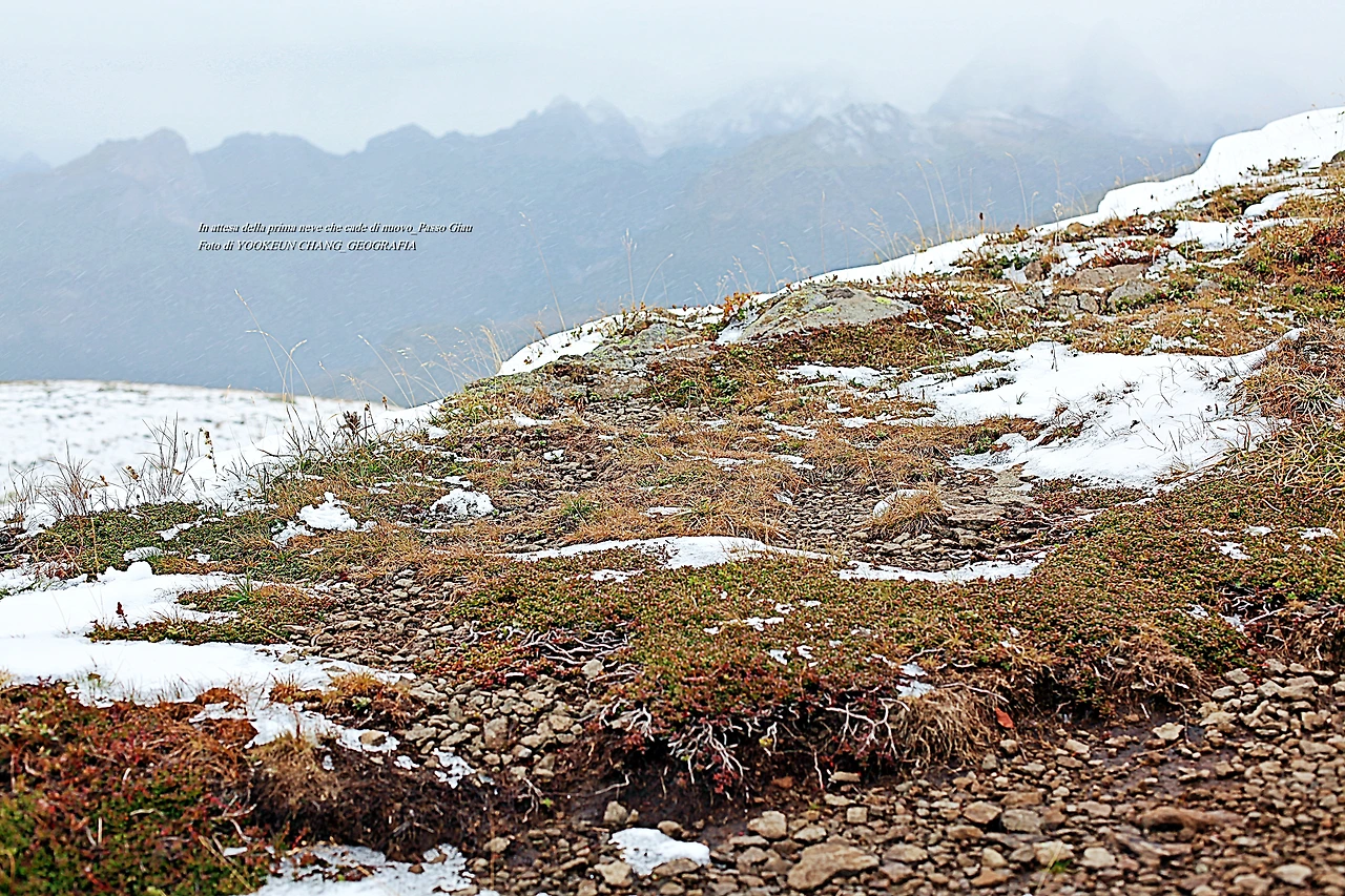 서기 2020년 12월 31일 오전(현지시각), 이탈리아 남부 뿔리아 주 바를레타에서 자시 열어본 사진첩 속에 그녀가 그리워하고 있는 풍경이 오롯이 묻어났다. 첫눈을 따라 최초 치비아나 고갯길(Passo Cibiana)에서부터 이곳 빠쏘 지아우 고갯길(Passo di Giau)까지 이어지는 여정은 3박 4일에 불과했지만, 수년간 이곳에 살았던 것 같은 느낌이 물씬 배어나는 것이다.