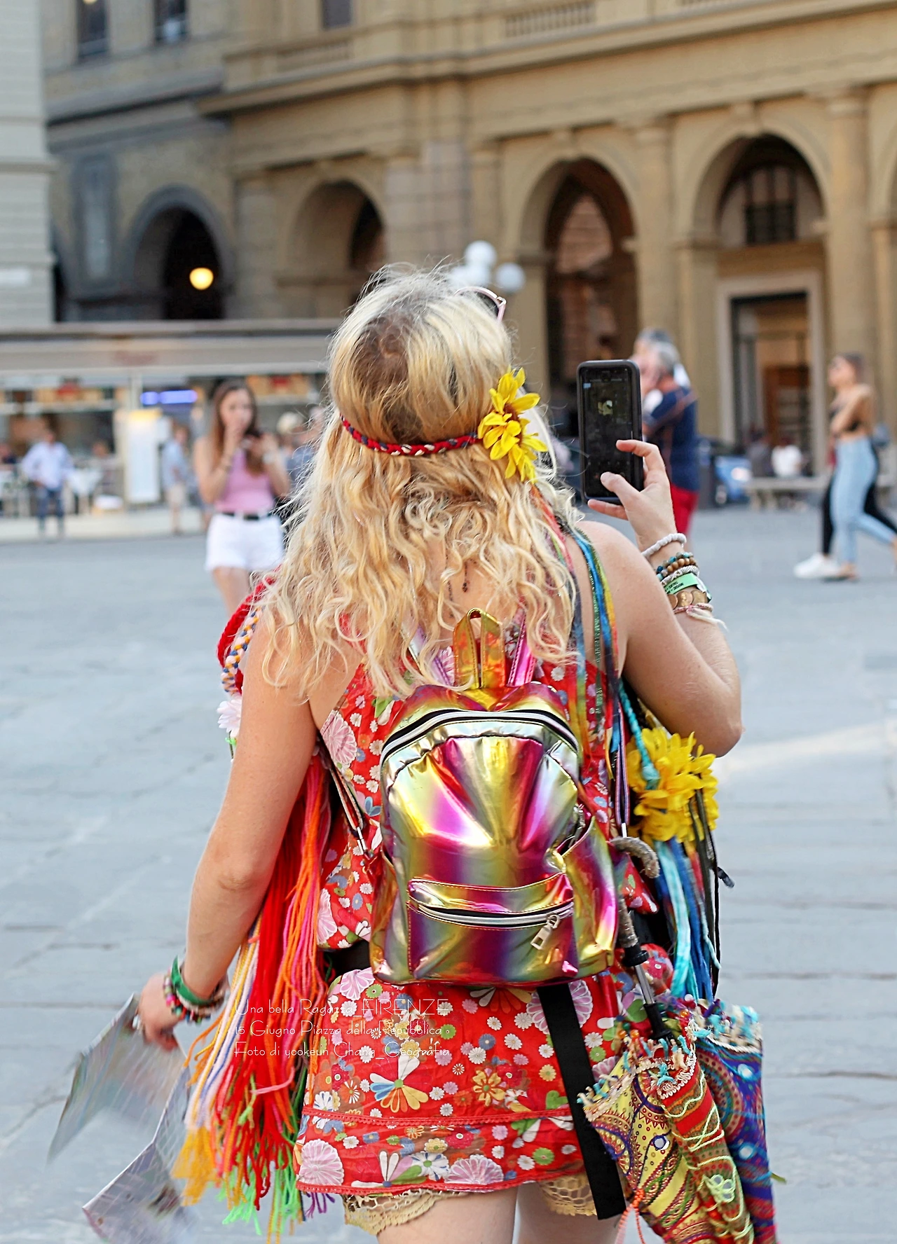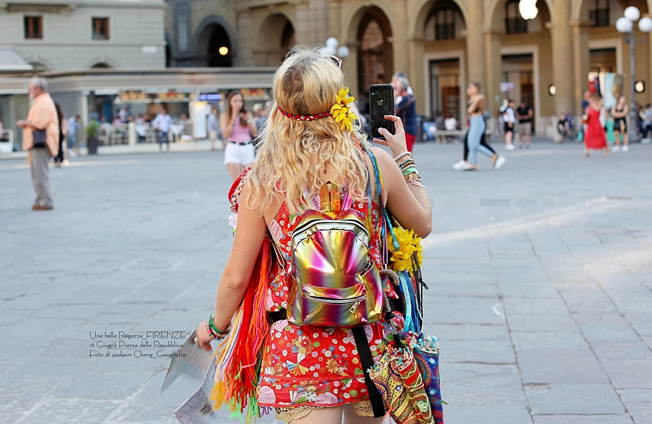 저녁나절 산책 삼아 피렌체 시내 중심에 위치한 공화국 광장(Piazza della Repubblica)으로 발길을 돌리다가 눈에 띄는 한 여성을 만나게 됐다. 그녀의 옷차림 때문이었다. 글쓴이가 이탈리아에 머무는 동안 가장 눈에 띈 여성이었다. 그녀의 차림을 보는 순간 단박에 "스스로 꽃이 된 여자"라는 생각이 들었다.