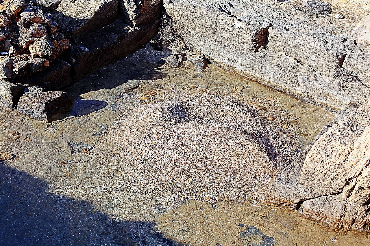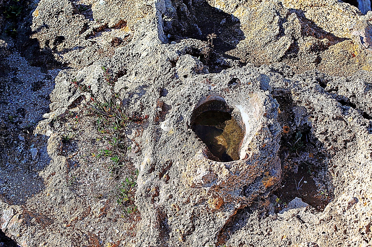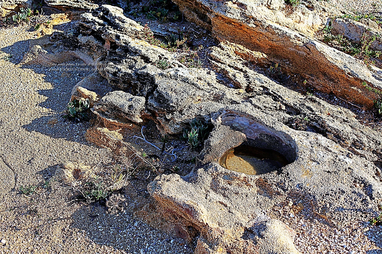 가던 걸음을 붙든 것은 산책로에서 10여 미터 떨어진 곳에 위치한 작은 구조물이었다. 구조물은 바위를 깎아 만든 것으로 계단이 만들어져 있었는데 그 아래 모래가 소복이 쌓여있었다. 이곳에 소량의 용천수가 솟아나고 있었던 것이다. 나폴리 왕국의 사람들 혹은 이곳에 살았던 사람들이 샘물을 얻을 수 있는 곳이 유일했을까.. 자세히 샘터를 관찰하니 수면 아래로 이글거리며 흐르는 샘물이 보였다. 담수와 해수가 함께 섞인 곳. 나는 그곳에서 6살 적 유년기의 모습을 발견하게 된 것이다.
