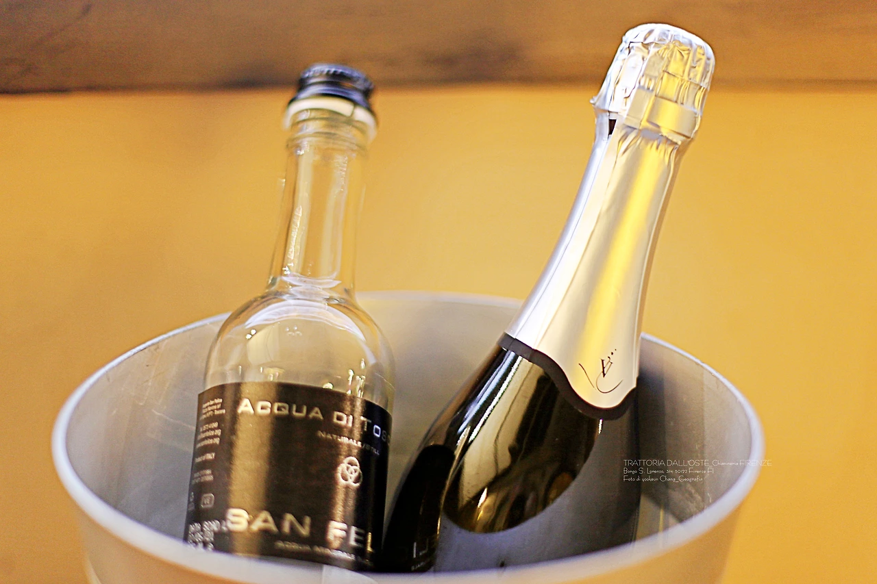 그런데 글쓴이가 주목한 비스떼까 뜨랏또리아는 영업 방법이 남달랐다. 아침부터 저녁때까지 하루 종일 발품을 판 손님들의 속을 얼마나 잘 아는지, 이 맛집에서는 손님이 줄을 서서 기다리는 동안 마냥 기다리게 두지 않았다. 배가 고파야 무엇이든 맛있는 게 아닐까. 뜨랏또리아 바로 앞에서 한 직원이 기다리는 손님을 위해 샴페인을 제공하고 있는 것. 기막힌 상술이자 영업 비밀이었다. 식욕을 돋우기 위한 식전주(L'aperitivo)를 제공하고 있었던 것이다. (식전주는 소화를 촉진시키기 위해 제공되는 식후주와 다르다는 거 다 아시죠..^^)