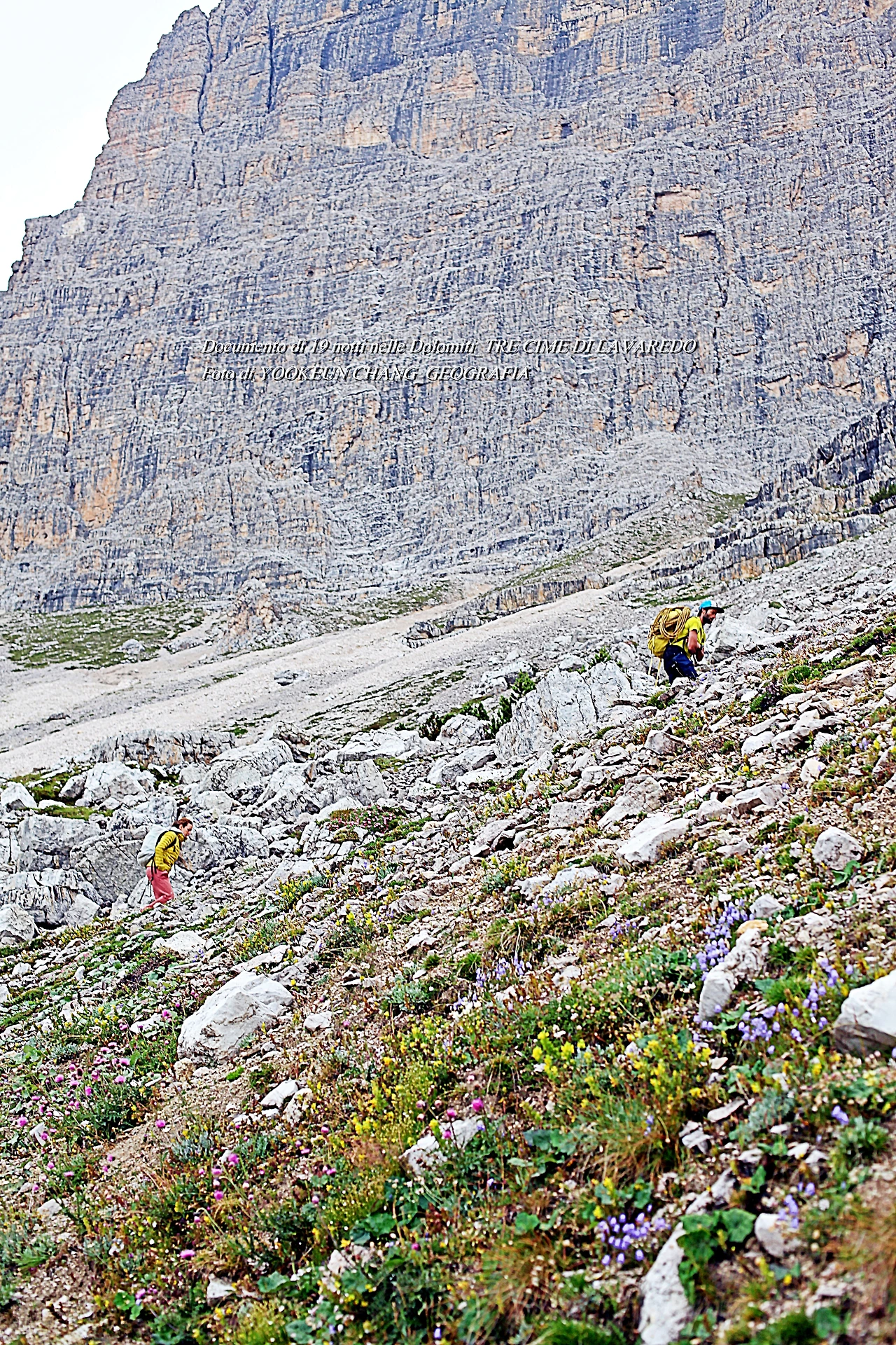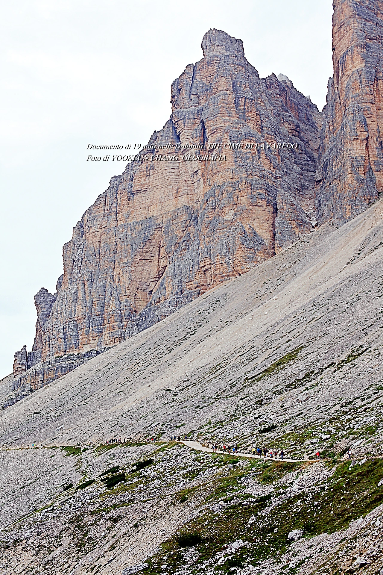 이번 포스트에서 보고 계신 장면들은 주차장의 휴게소에서 출발하여 뜨레 치메 디 라바레도가 잘 조망되는 곳으로 이동 중에 우측으로 만나게 되는 비경들이다. 이날이 8월 13일 오전이었으며 탱크가 지나다닐 수 있는 넓은 길 옆에는 야생화들이 지천에 널려있었다. 뜨레 치메 디 라바레도의 최고봉(Cima grande di lavaredo)은 2,999m라 했다. 아무리 떠들어도 소용없다. 백견불여일실(百見而不如一實).. 백번 보는 것보다 한 번 가 보는 게 더 낫다..!!