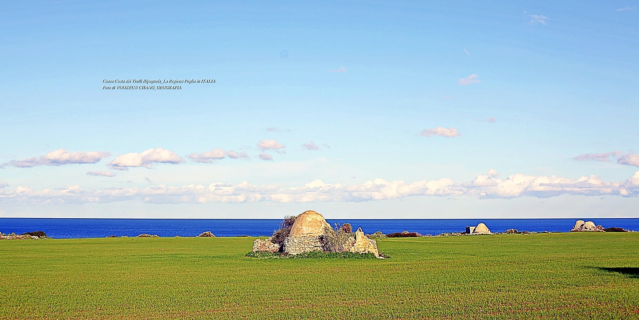 지난 여정 안 먹어도 배부른 풍경 편 끄트머리에 이렇게 썼다. 나는 가던 길을 멈추고 꼬쩨, 꼰베르사노(Cozze(Mola di Bari)/ Conversano) 방향으로 빠져나갔다. 아드리아해를 끼고 달리던 국도에서 다시 간선도로로 빠져나간 것이며, 석기시대 때 만들어진 지붕이 뾰족한 돌집(capanne di pietra)을 찾아 나선 것이다. 나는 이때부터 까마득한 시간 저편으로 떠나버린 나를 발견할 수 있었다. 시간이 멈추어 선 곳. 그곳을 한동안 바라보며 나의 존재를 재확인해 보는 것이랄까..