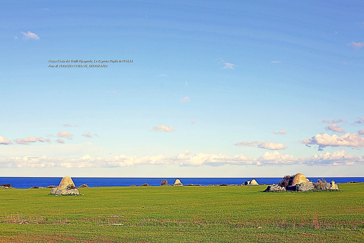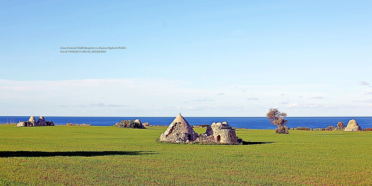 집을 향해 북상하던 중 아드리아해가 보이는 바닷가의 눈에 익은 풍경을 만나게 된 것이다. 그곳에는 석기시대 때 만들어진 지붕이 뾰족한 돌집(capanne di pietra)이 바닷가를 따라 곳곳에 널려있었다. 다시 한번 더 피곤해진 발걸음을 붙드는 장면이 석기시대로 시간여행을 떠나게 만든 것이다. 나는 이곳에서 해가 뉘엿거릴 때까지 발품을 팔았다.