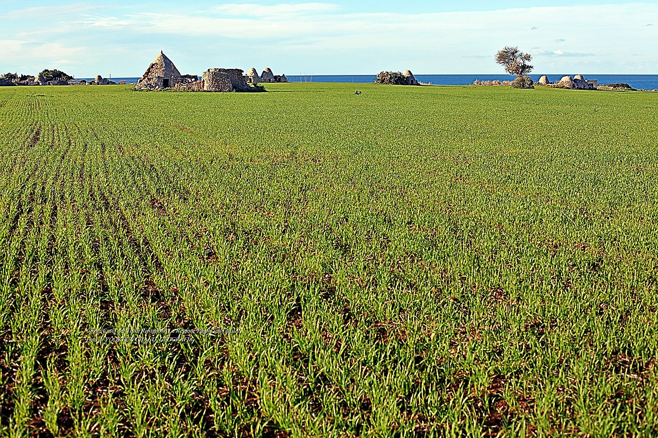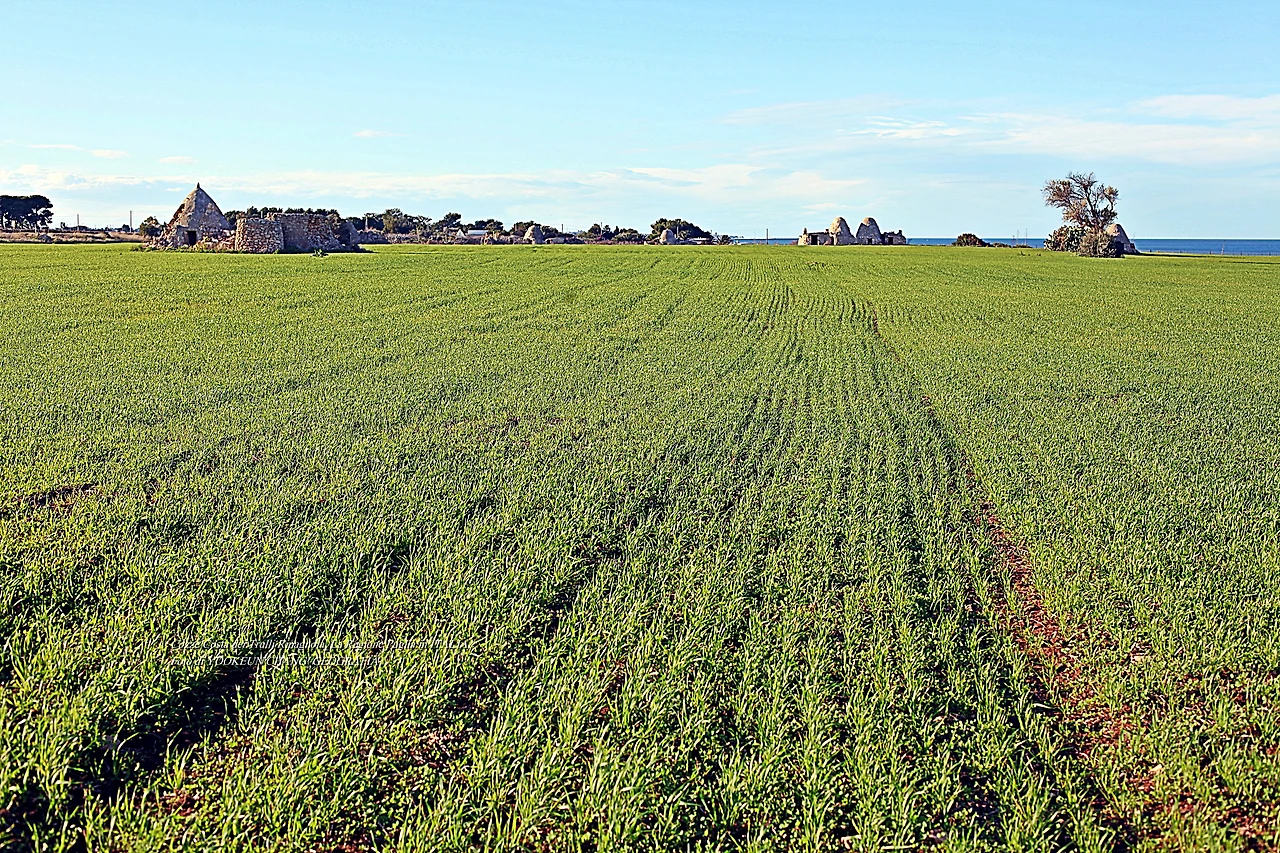 하지만 당시의 사정 등을 감안하면 돌 하나를 다듬고 운반하고 쌓아 올리는 과정은 결코 쉽지 않았을 것이다. 따라서 돌무더기와 돌집의 외관은 부를 과시하는 수단으로 작용했을 개연성까지 생각해 보니 저절로 미소가 지어지는 것이다. 나는 어느새 듀럼밀(Grano duro)이 파종된 널따란 밭을 가로질러 돌집에 다가서고 있었다.