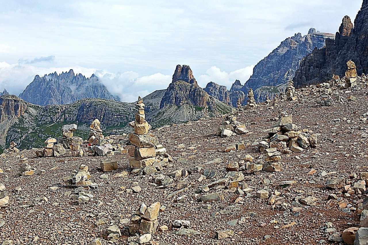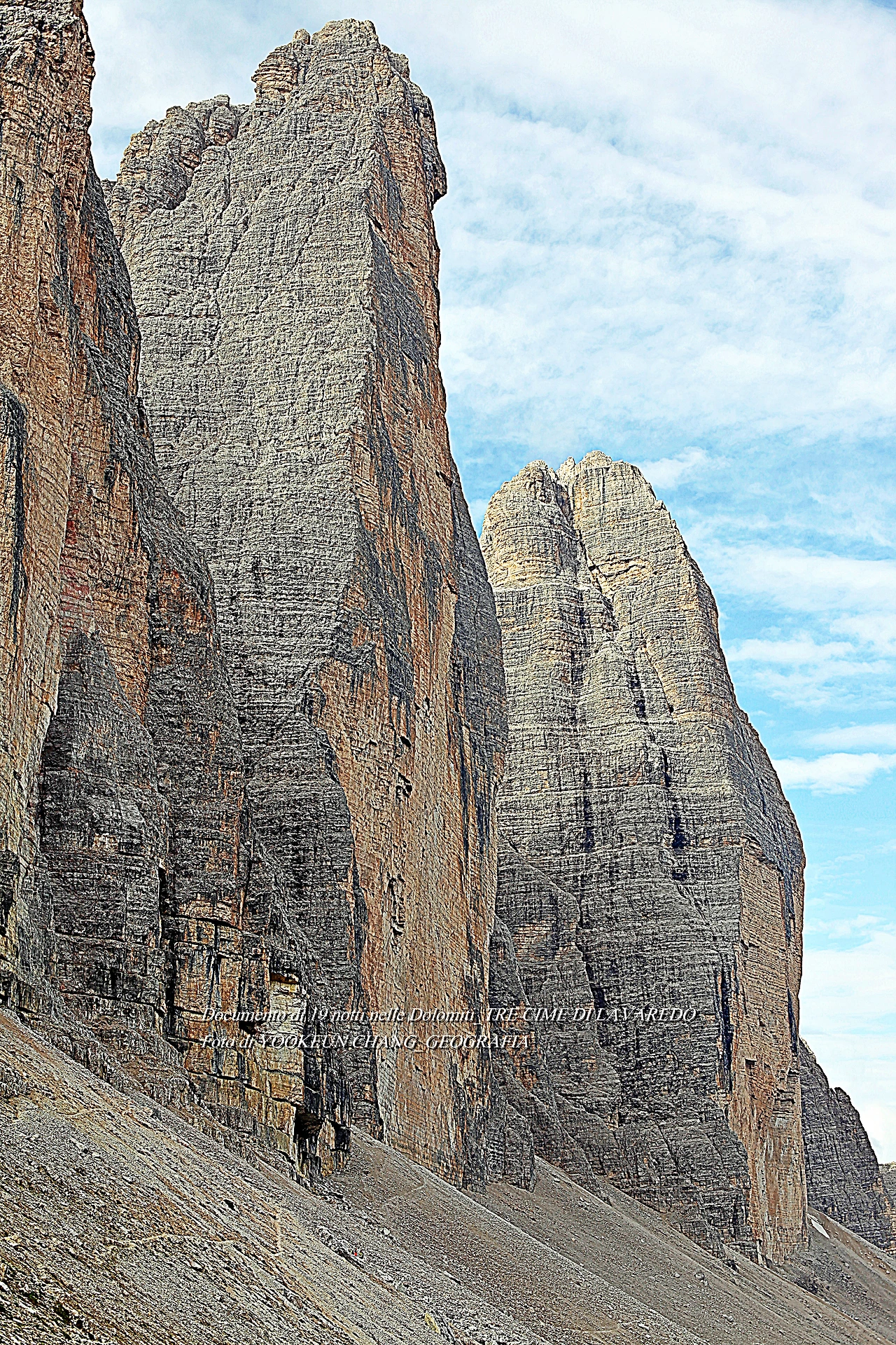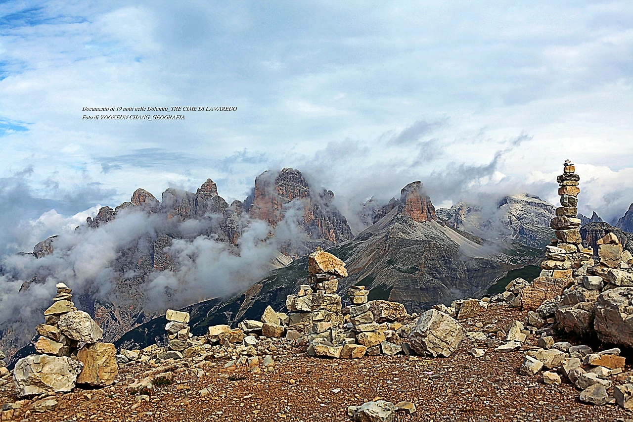 암봉은 묵묵히 제자리를 지키고 있었다. 그 세월이 얼마만큼 되는지 아는 사람은 흔치 않다. 알려고도 하지 않는다. 관련 연재 글에 돌로미티 산군이 형성된 시기는 대략 7천만 년 전으로 거슬로 올라간다고 말한 바 있다. 우리 인간이 계수할 수 없는 까마득히 먼 시간부터 지금까지 제자리를 지키고 있는 것이다. 사람들이 세 암봉 아래서 감동에 빠져들거나 작아지는 것도 그 때문 아닌가..