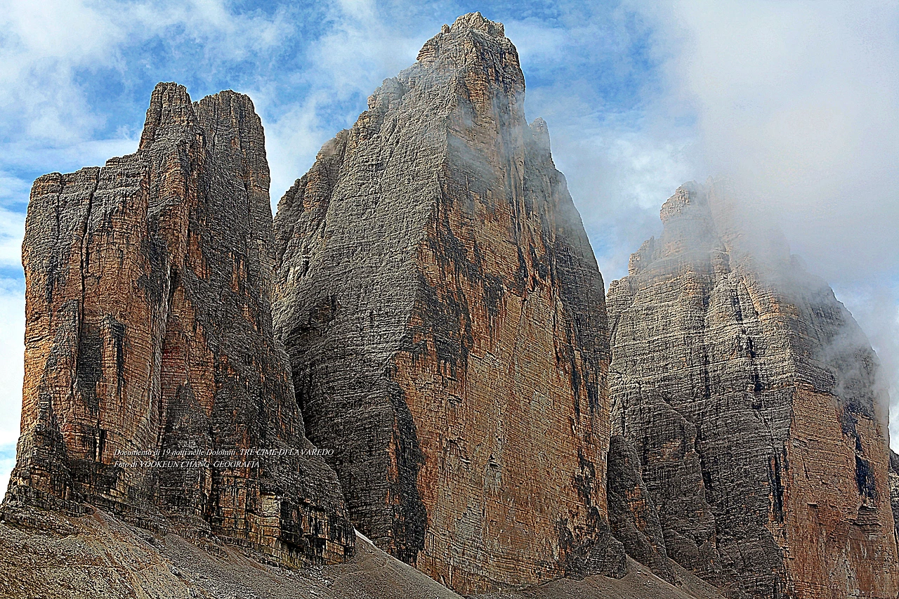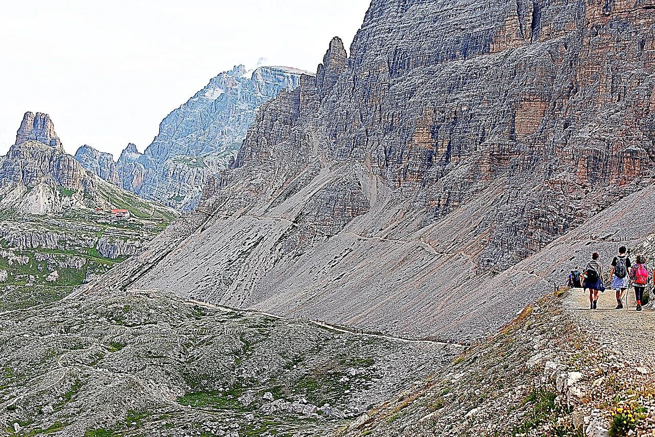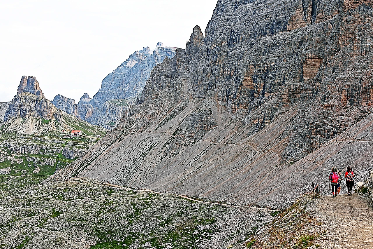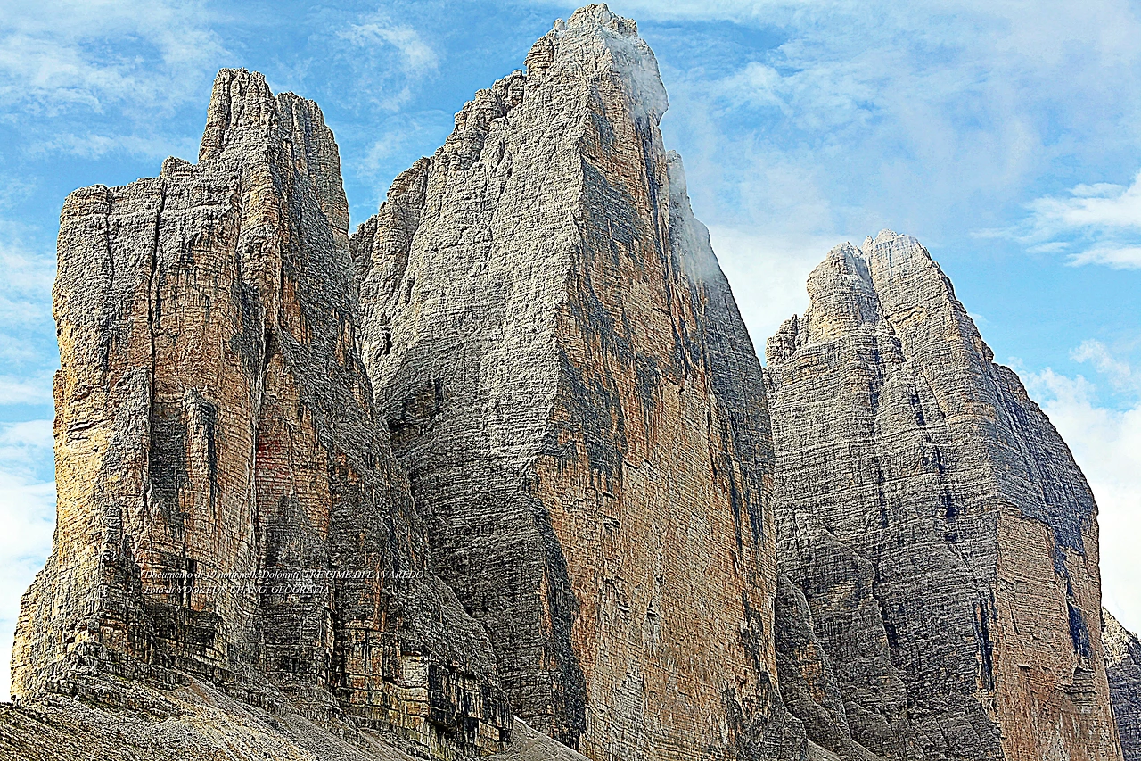 암봉은 묵묵히 제자리를 지키고 있었다. 그 세월이 얼마만큼 되는지 아는 사람은 흔치 않다. 알려고도 하지 않는다. 관련 연재 글에 돌로미티 산군이 형성된 시기는 대략 7천만 년 전으로 거슬로 올라간다고 말한 바 있다. 우리 인간이 계수할 수 없는 까마득히 먼 시간부터 지금까지 제자리를 지키고 있는 것이다. 사람들이 세 암봉 아래서 감동에 빠져들거나 작아지는 것도 그 때문 아닌가..