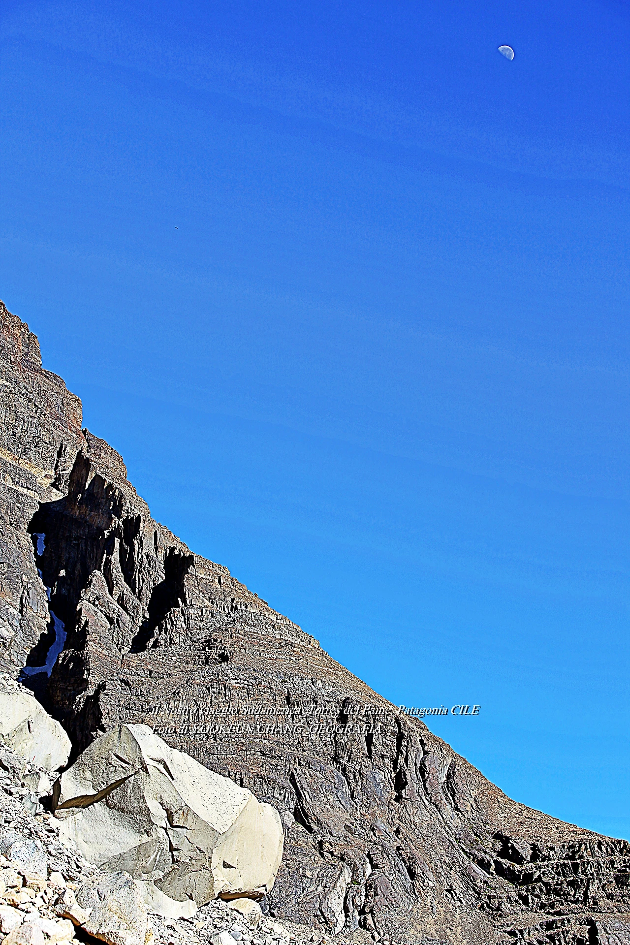 달님과 별님은 너무도 신기했었지.. 지구와 달의 유기적 맞물림과 함께 나를 둘러싼 우주는 나로부터 발현되고 있었던 것일까.. 하니가 또레스 델 빠이네 정상을 향해 저만치 앞서 걷는 가운데 하늘을 올려다보니 그곳에 달님이 우리를 지켜보고 있었다. 더 푸를 수도 없는 새파란 하늘 드높은 곳에 떠있는 달님은 유년기 때 본 달님을 쏙 빼닮았다. 우리나라에만 있어야 할 달님이 파타고니아에도 있었던 것이다.(욱껴!ㅋ)