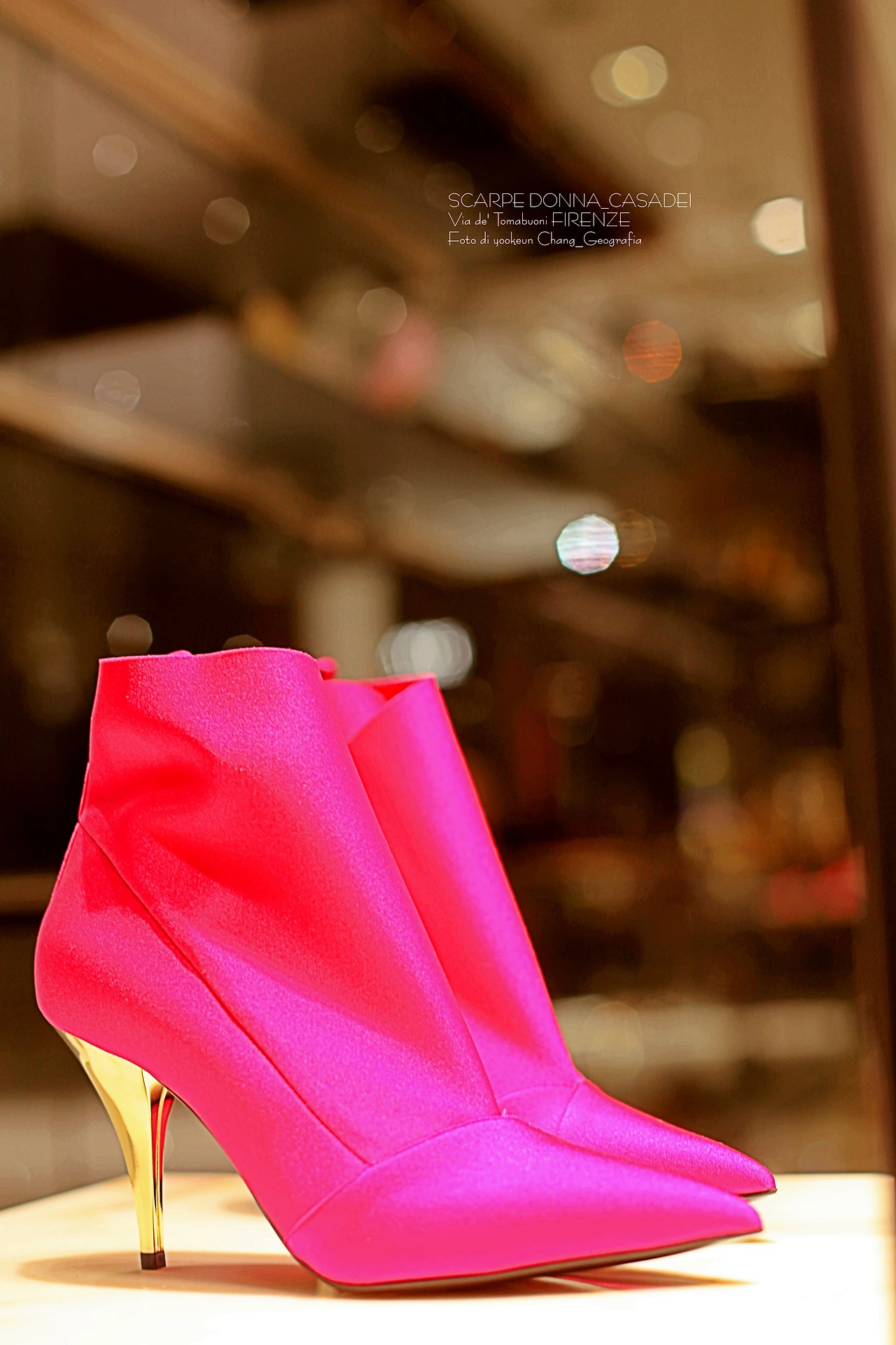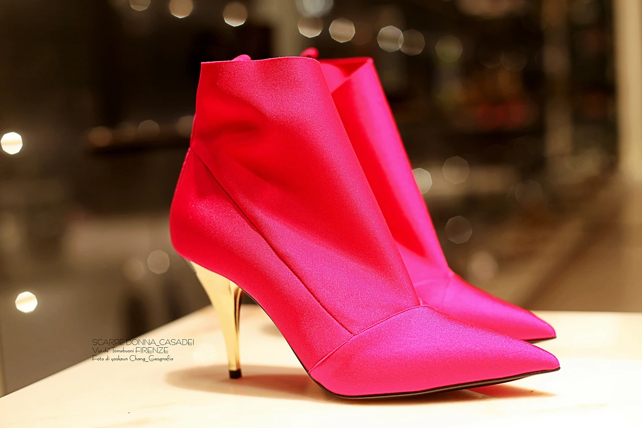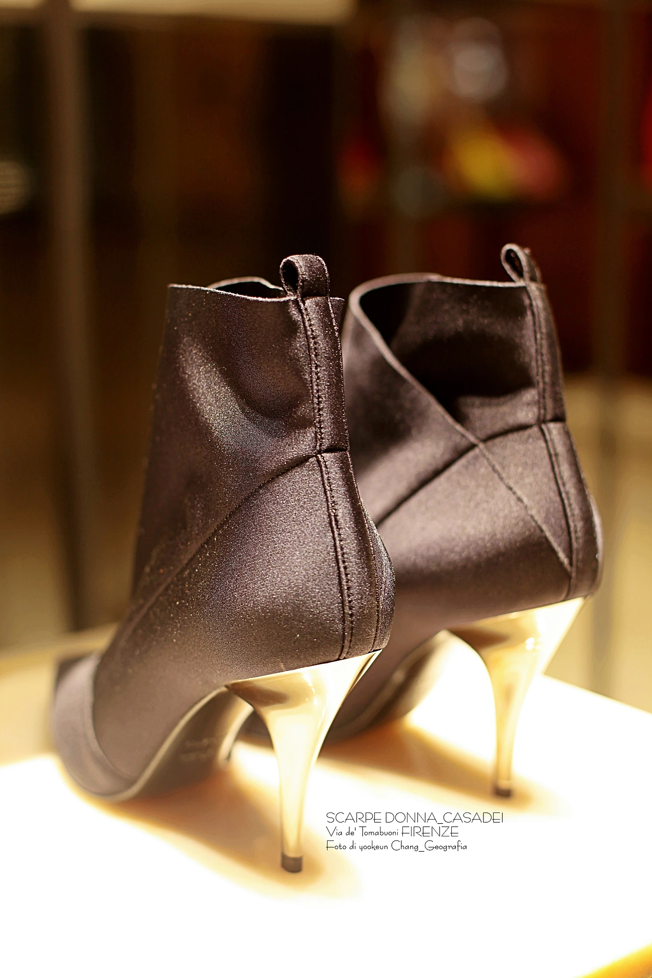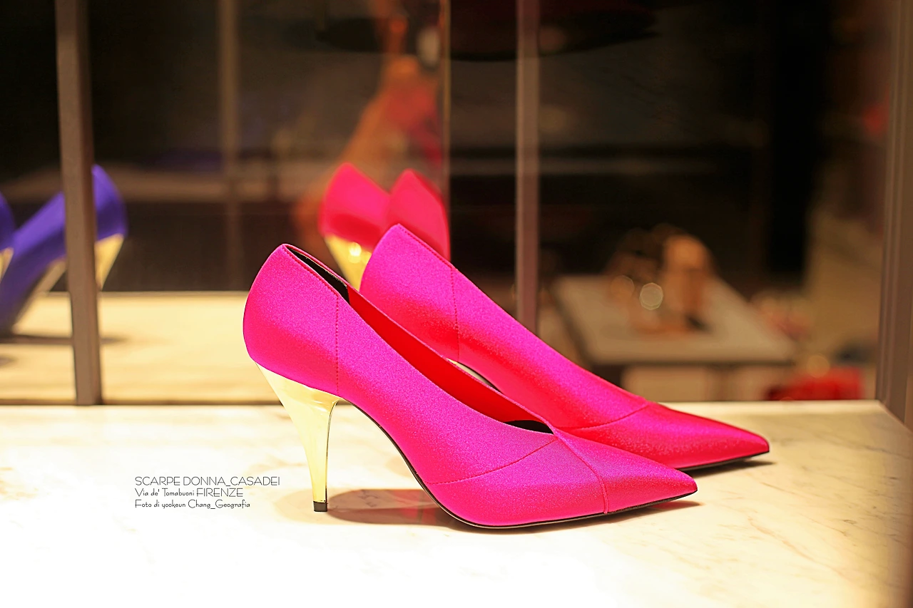 며칠 전의 일이다. 저녁나절, 더위를 피해 르네상스의 고도 피렌체 중심가의 명품거리를 서성거렸다. 아직은 한낮의 열기가 바짓가랑이 속으로 스며들 때다. 얼마나 뜨거웠으면 사람들은 그늘만 찾아 돌아다닐까. 물론 관광 삼매경에 빠진 사람들에게 더위는 아무런 문제도 없어 보인다. 얼마나 싱싱해(?) 보이는지 물 만난 고기들 같다. 해가 저물자 명품거리도 아르노 강으로부터 불어온 바람이 살랑거렸다. 또 눈에 아른거리는 풍경들도 이때쯤 보이기 시작하는 것. 주지하다시피 피렌체 구시가는 언제 어느 때 어디를 돌아다녀도 심심할 여가가 없는 곳이다. 피렌체는 르네상스의 유적들은 물론 현대 이탈리아 패션의 중심지 중 하나이기도 하다. 세계인들이 매일같이 몰려드는 곳이므로 새로운 패션이 실시간으로 업데이트되는 곳. 의상으로부터 신발, 가죽공예 등등등 발걸음을 옮기는 곳마다 눈요기거리가 널린 곳이다. 골목골목 어디가 더 낫다고 할 수 없을 정도랄까. 도시 전체가 고풍스러운 인테리어 소품처럼 자리 잡은 곳에 유명 브랜드들이 얼굴을 내밀고 사람들의 눈길을 붙들어 놓는 것이다. 이곳에 둥지를 튼 후 수도 없이 봐 왔건만 다시금 눈길을 끄는 진열장 속의 근사한 패션 상품들. 이날 나는 명품거리에 위치한 까사데이(CASADEI) 앞에서 서성거린 것이다. 그곳에서 마치 신데렐라가 신었을 법한 예쁘고 우아하며 귀티 나는 화려한 신발들이 내게 말을 걸어오는 것이다.