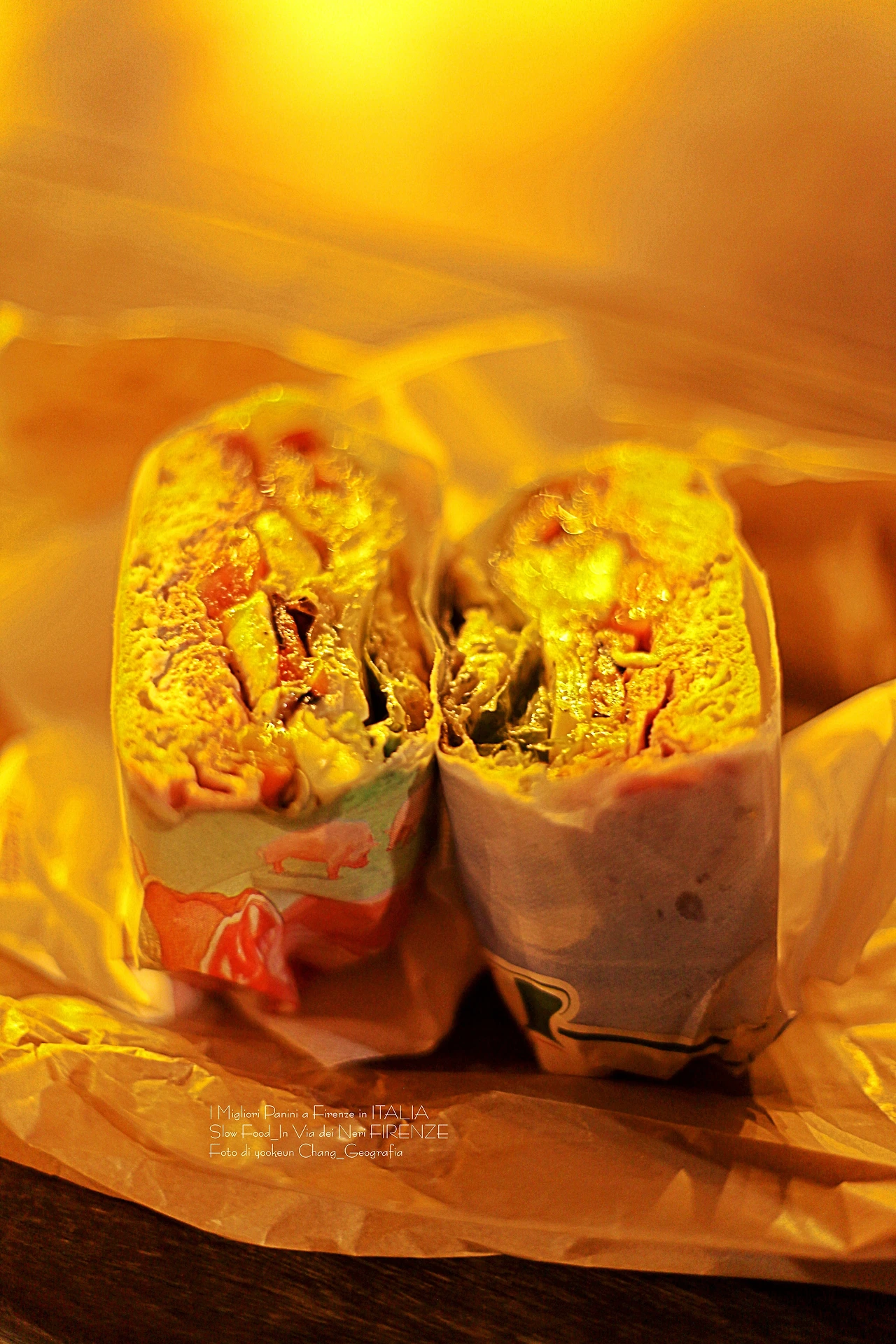 따라서 귀갓길에 아내와 함께 저녁으로 먹을 겸 햄버거 하나를 사서 두 쪽으로 나누어 달라고 주문하는 한편 즉석에서 인증샷을 날린 것. 또 양해를 구해 여러 컷의 관련 자료가 담긴 사진을 남겼다. 사진과 영상에서 확인되는 것처럼, 이 햄버거(I Migliori Panini a Firenze)는 얼마나 큰지 5유로짜리(내용물에 따라 여러 종류의 햄버거가 있다) 한 개(1kg 육박)만 먹어도 한 끼 식사는 거뜬할 뿐만 아니라, 우리 같은 경우는 둘이 나누어 먹어야 할 정도이다.
