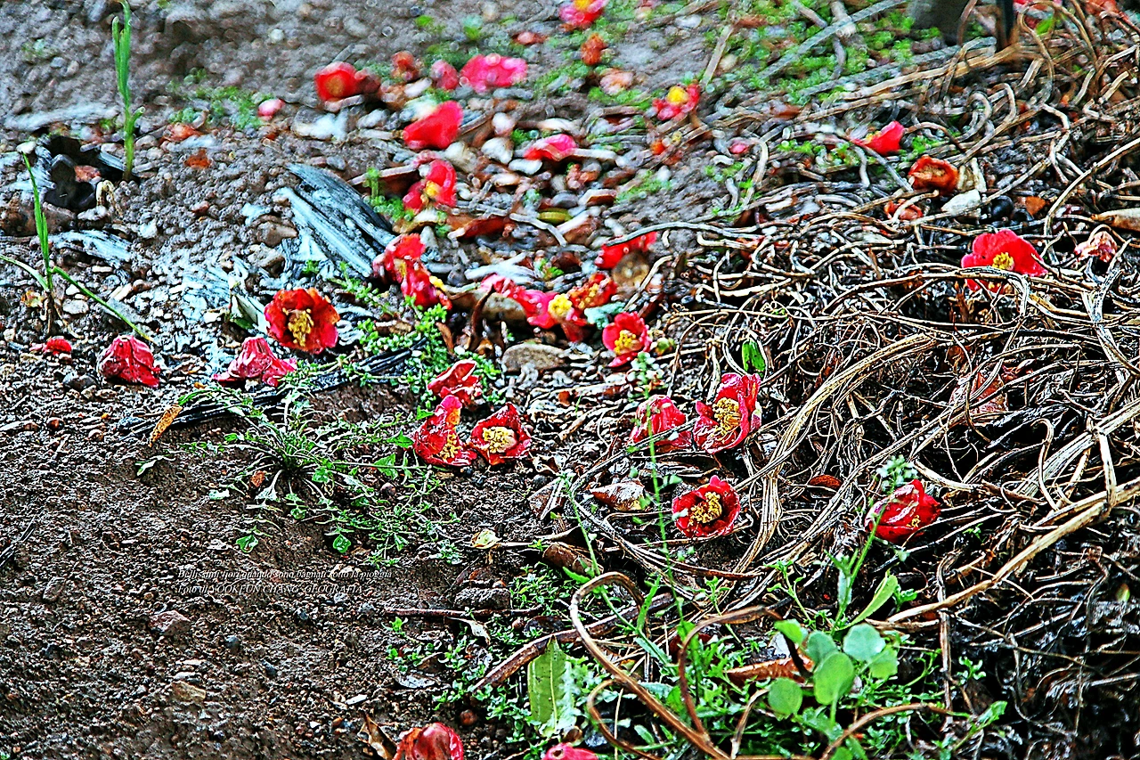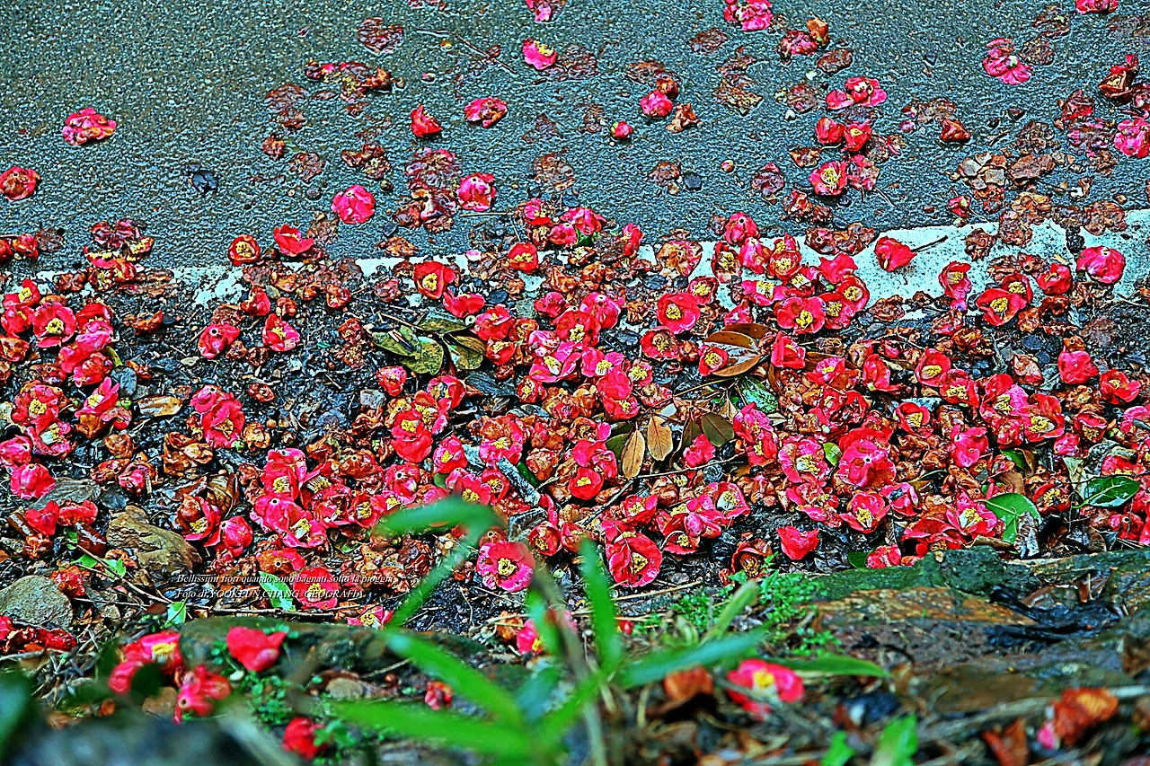 3월 초하룻날, 남도의 땅끝 해남의 송호리 해수욕장에서 언덕 하나를 넘자 자동차를 가로막는 진풍경이 펼쳐졌다. 빗방울의 무게를 견디지 못한 동백꽃들이 무더기로 쏟아져 내렸다. 봄비가 오시지 않아도 지고 말았을 테지만, 무슨 까닭 모를 슬픔을 간직했던 것인 지... 차에서 내려 천천히 다가선 낙화 현장. 너무 아름다워 슬픔이 뚝뚝 묻어난다. 아직 지지 않아도 그 누구도 뭐라 하지 않을 텐데.. (기록, 2014년 3월 초하루)