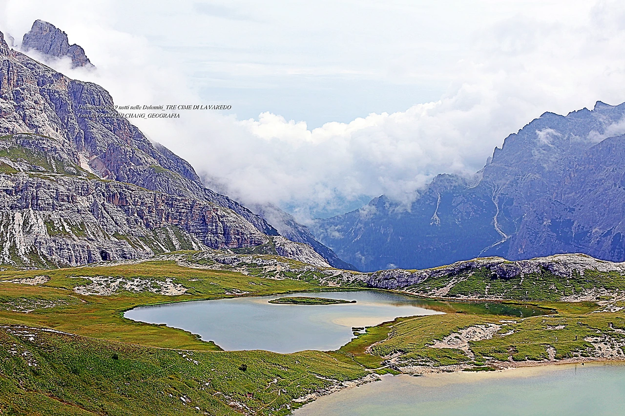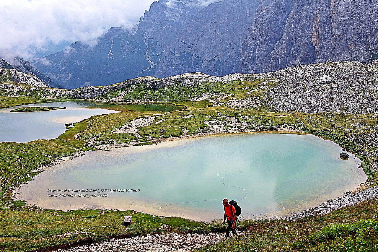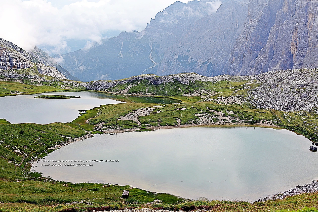 이 같은 일이 돌로미티의 상징 부근에서 일어난 것이다. 전혀 생각하지 못한 비경이 눈 앞에 나타나 여행자를 기분 좋게 하는 것이다. 맨 처음 세 봉우리에 초점을 맞추어 열심히 발품을 판 결과 쉼터 바로 곁에 상상밖의 비경(작은 호수 두 개)이 우리를 놀래키고 있는 것이다. 오래전 어른들은 이런 현상에 대해 "너는 복(福)도 많구나"라는 표현을 쓰곤 했다.