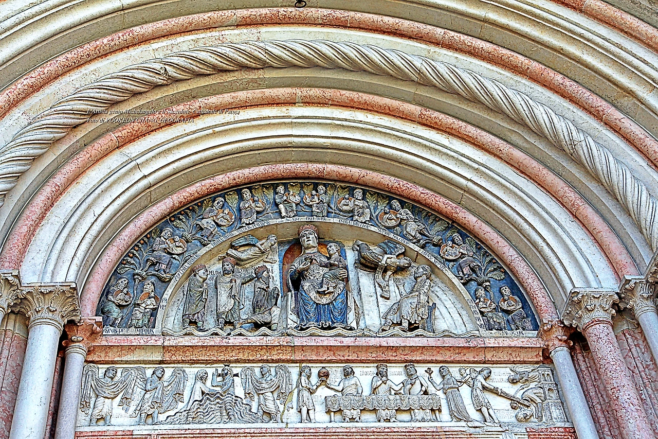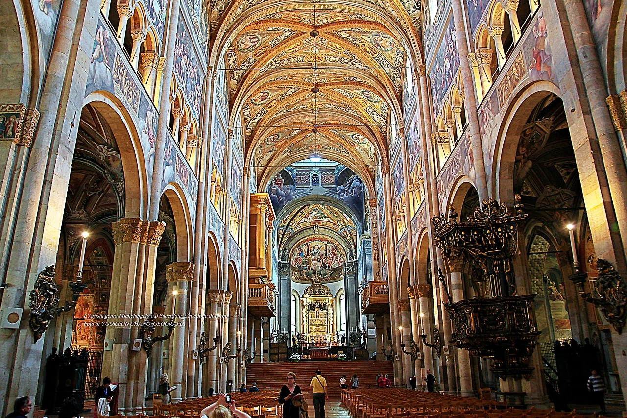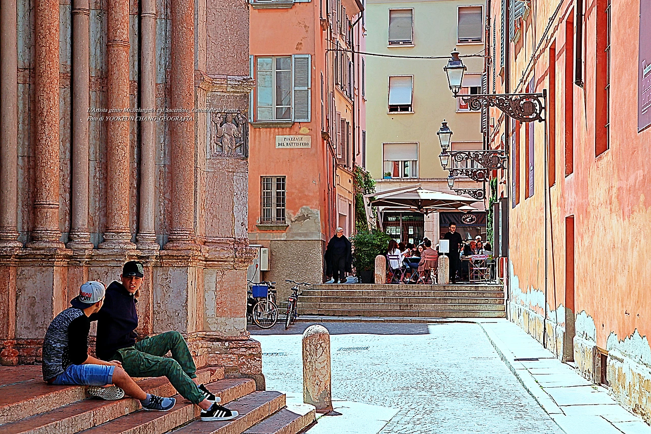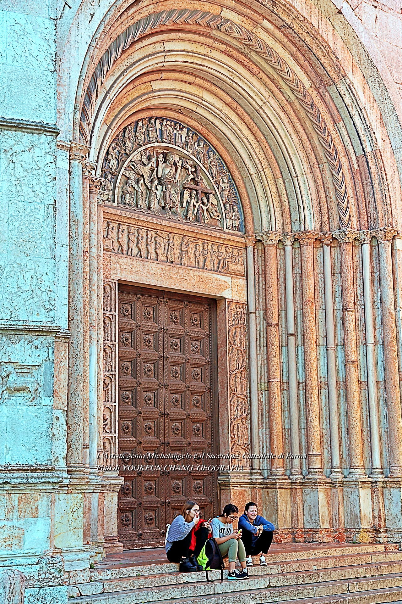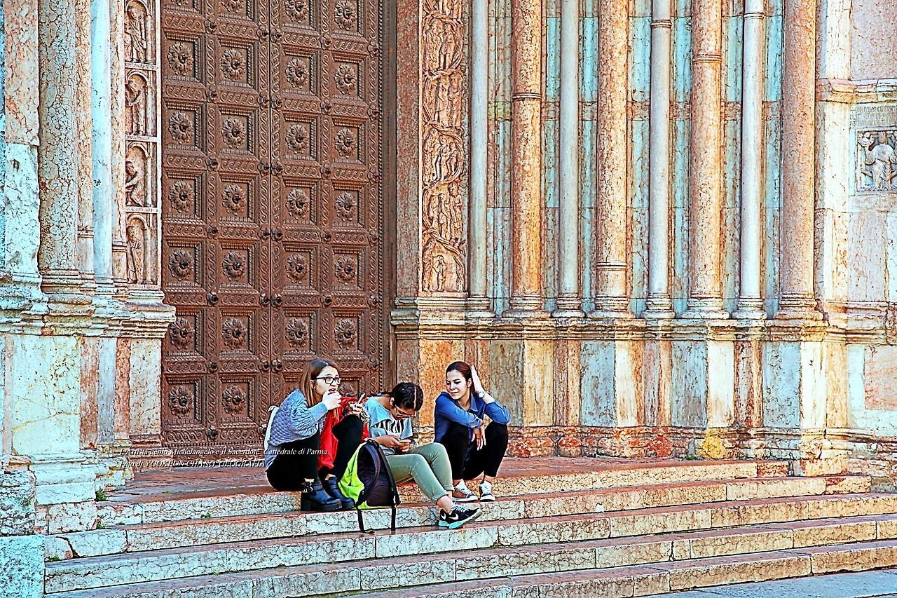 세 여자 아이가 앉아있는 곳은 빠르마 두오모(Duomo di Parma) 앞이다. 이곳은 이탈리아 북부 지방의 에밀리아 로마냐 주(Emilia-Romagna)에 위치한 곳이다. 서기 1106년에 산타 마리아 아순타 성당(La cattedrale di Santa Maria Assunta)으로 헌정되어 지금에 이르고 있으므로 대략 1000년의 세월이 흘렀다. 빠르마에서 가장 중요한 가톨릭 예배 처소이다. 이탈리아 주 정부(에밀리아 로마냐)가 후원하고 있는 요리학교에서 멀지 않은 곳.