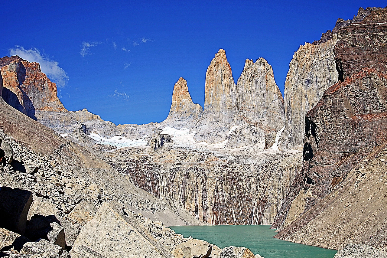사람들은 갑자기 놀라거나 장엄한 풍경 앞에 서면 할 말을 잊는 법이다. 정상에 다다른 사람들은 아무런 말도 없이 눈 앞에 펼쳐진 놀라운 광경만 그저 바라볼 뿐이었다. 대여섯 명의 사람들이 운집해 있는 곳이 전망대(Mirador Las Torres)이자 산길(Fin del sendero)이 끝나는 곳이다. 나는 우리 곁을 따라다닌 이 계곡의 발원지를 찾아 호수에 손을 담그는 한편 물을 맛보고 싶었다.