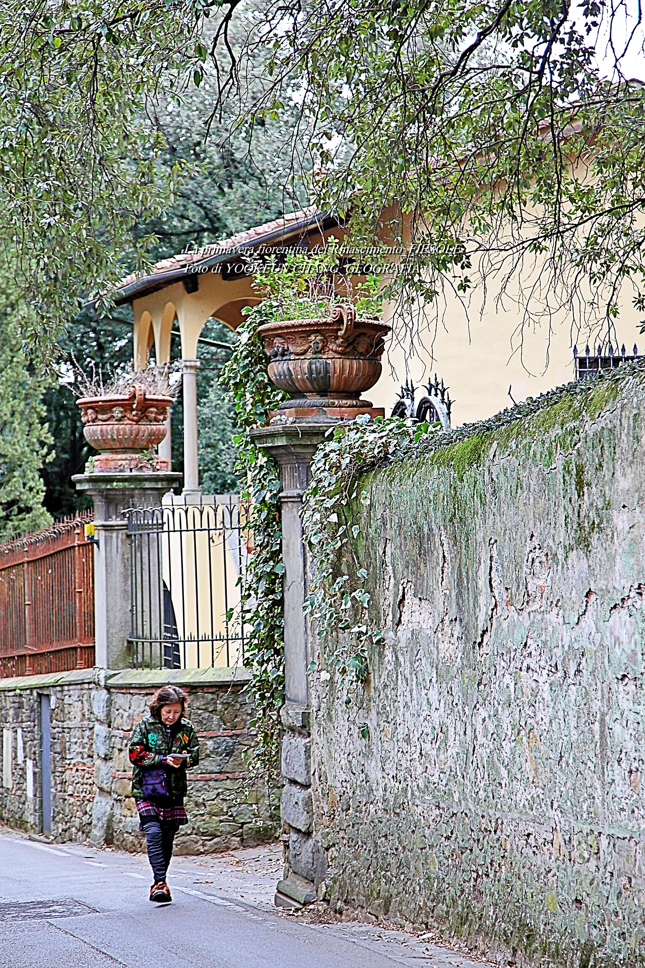 하지만 언제부터인가 피에솔레는 피렌체에 잡아먹히며 명맥만 겨우 유지하고 있었던 것이다. 우리가 발길을 옮기고 있는 이곳은 피에솔레의 부자들이 살고 있는 곳으로 담벼락은 성곽을 연상케 하고 있었다. 나는 속으로 "무슨 짓을 저질렀길래 담장을 이렇게 높이 쌓는지.."라며 이들의 속내를 궁금해했다.