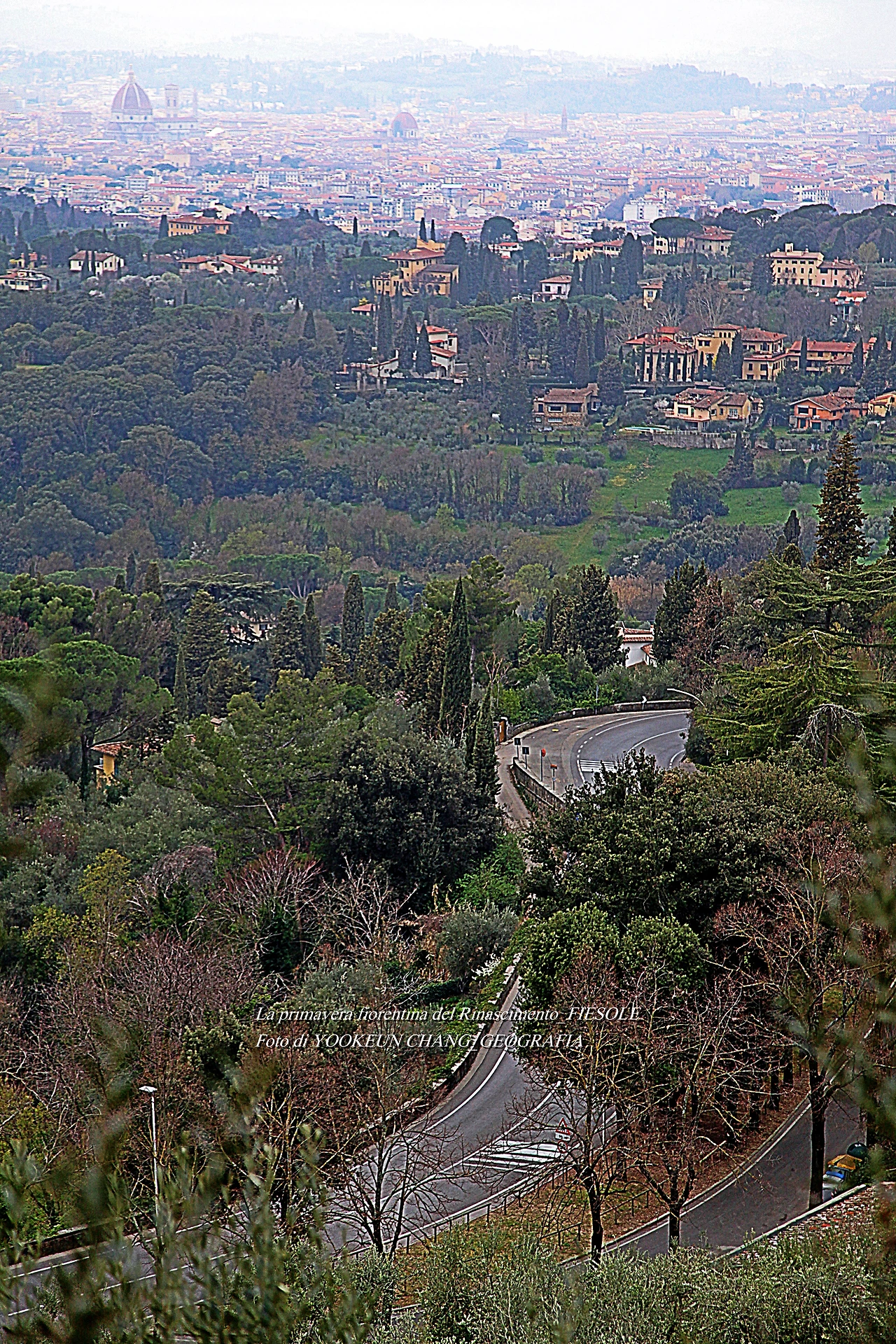 위 자료사진을 잘 봐주시기 바란다. 피에솔레로 가는 길은 파랗게 그어져 있다. 하니와 나는 산 도메니코(SAN DOMENICO) 교회 아래 하얀 점 좌측 하단으로까지 피렌체 시내서 걸어왔다. 그리고 그곳에서 피렌체에 꼭꼭 숨겨진 명소에 등장한 풍경을 따라 우측으로 휘어진 도로를 따라 걷고 있는 것이다. 그리고 정류소 세 군데를 지나 근사한 리스또란떼(Coquinarius Fiesole)로 이어지는 길을 걷고 있는 것이다. 그곳이 인생은 짧고 갈 곳은 천지빼까리란 포스트에 실린 풍경들이다.