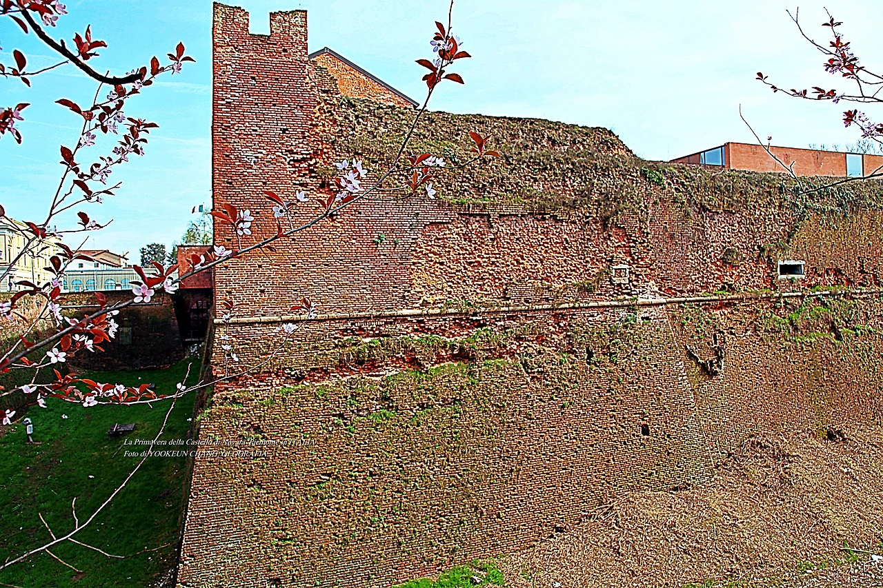 잘 구운 붉은 벽돌로 촘촘히 쌓은 성은 주변의 해자와 잘 어울려 난공불락의 성처럼 보였다. 성 주변에 다가서면 이 성을 축조한 사람들의 환영이 보이고 반듯하게 잘 지은 성의 질감이 나를 매료시켰던 것이다. 적의 침입을 방어하는 성의 개념이 아니라 하나의 작품처럼 다가오는 것이다. 그래서 잠시 쉬는 휴식이 주어지면 카메라를 들고 이곳을 방문한 것이다. 그때 만난 봄맞이 풍경이 이탈리아에 흔치 않은 겹벚꽃이었다. 그 현장을 통째로 공유하기로 한다.