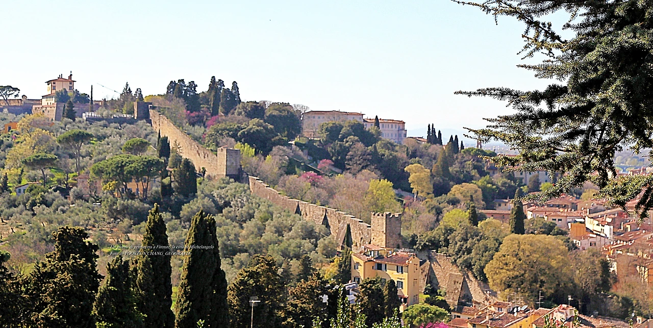 그런데.. 이곳을 찾는 사람들 다수는 모조품에 눈길을 돌리지 않고 아르노 강과 피렌체 시내가 보이는 언덕으로 몰려드는 것이다. 그곳에 서면 피렌체 서쪽 언덕을 둘러싼 성벽(Mura di Firenze)과 주변 풍경이 어우러져 한 폭의 중세풍의 서양화를 보는 듯하다.