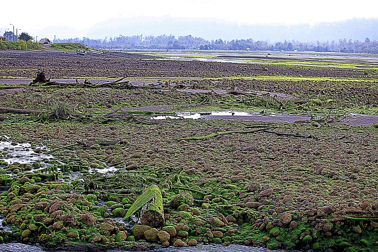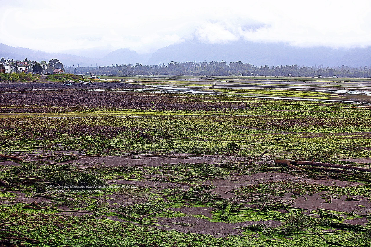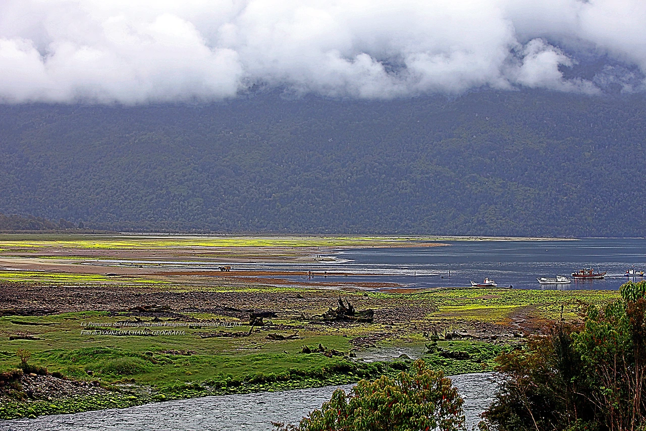 봄이 저만치 가시지 전에 속도를 내어 우리가 만났던 풍경들 일부를 공유하기로 한다. 참고로 연둣빛의 정체는 우리나라에서 겨울에 즐기는 매생이와 꼭 닮은 해조류였다. 밀물이 들면 꼭꼭 숨겨져 있다가 썰물 때 전라의 모습을 드러내 놓고 여행자를 유혹하는 것이다. 바다에도 봄이 오시고 있었던 것이다. 하니와 나는 어느 날 아침 숙소를 출발하여 장차 우리가 건너게 될 선착장(Carretera Austral Hornopiren)까지 걸어가 봤다. 이때 촬영된 사진이 자화자찬의 풍경이다. 씩~^^
