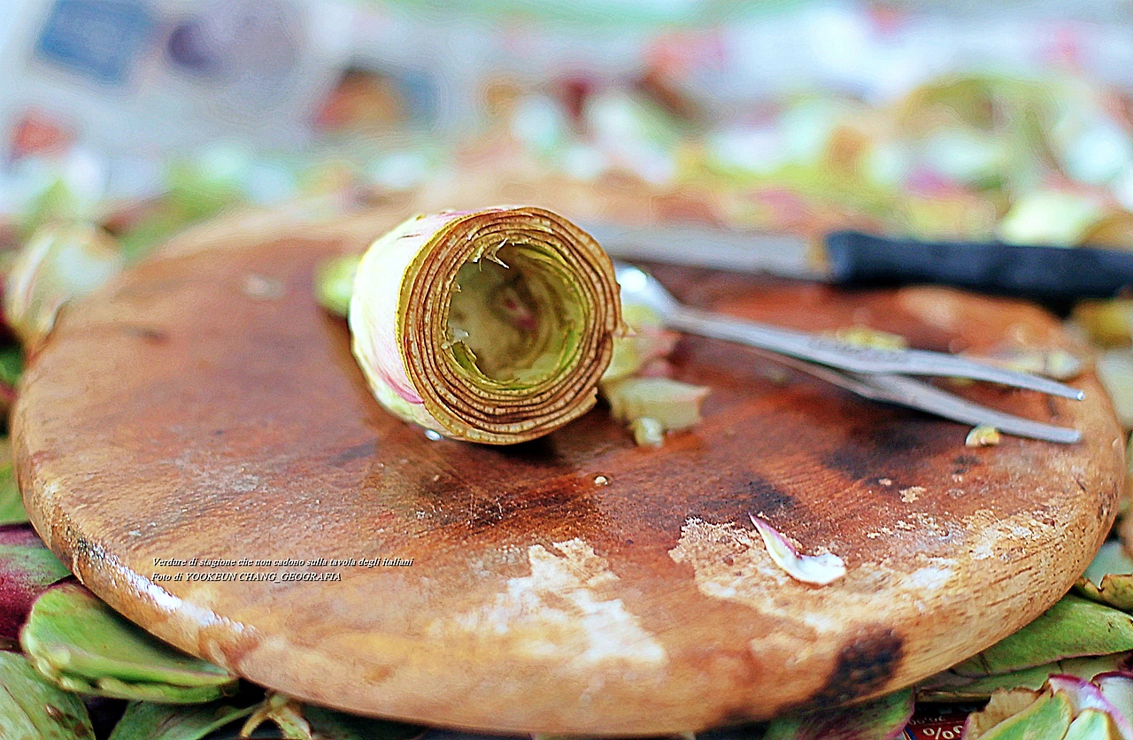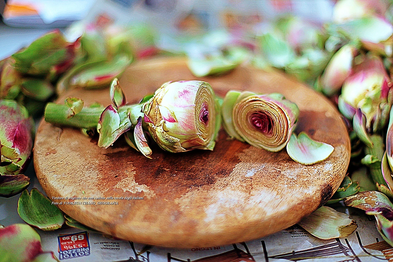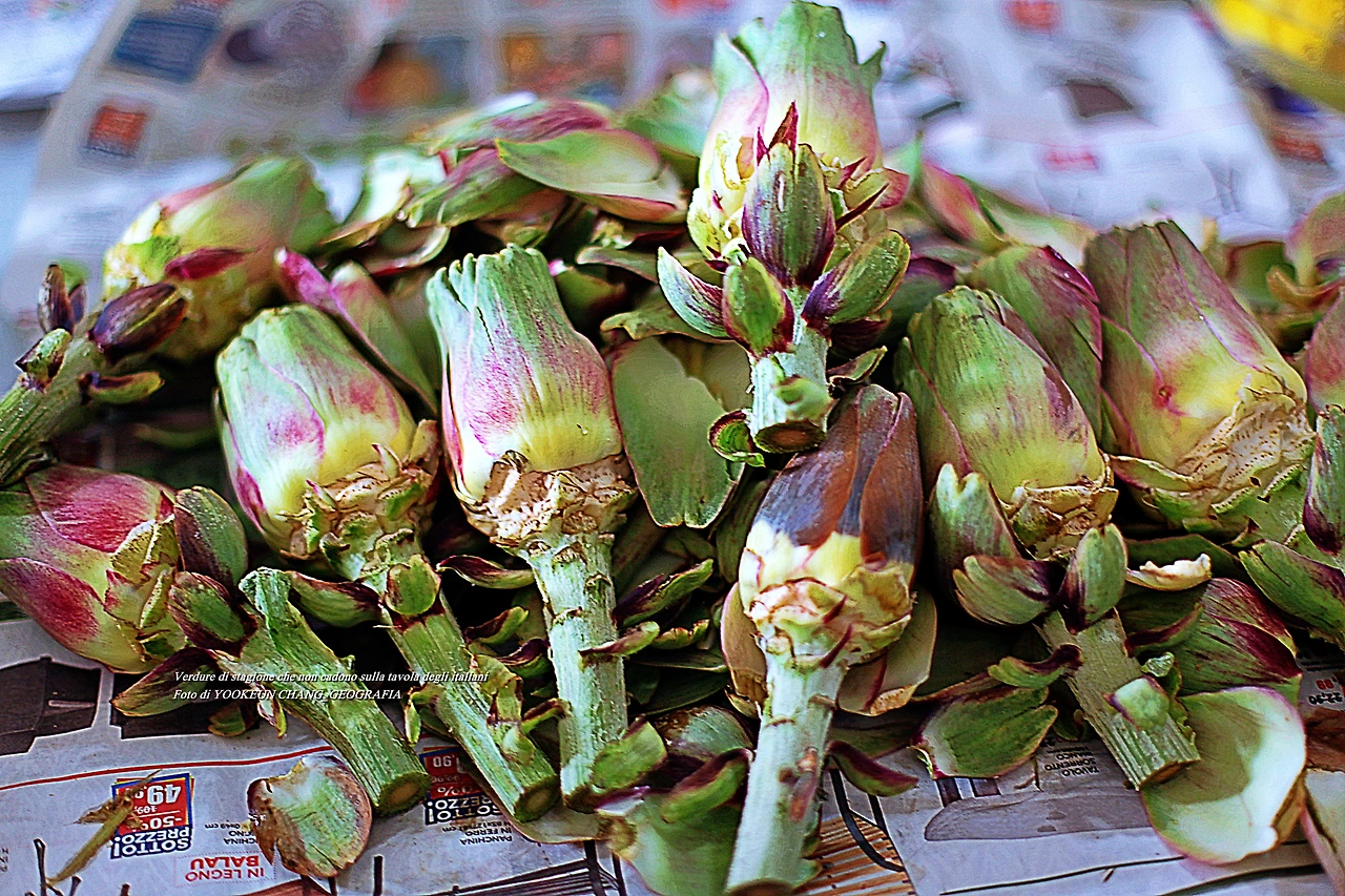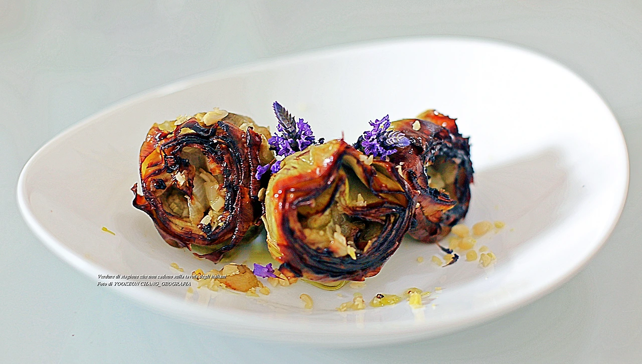 이탈리아인들이 요즘 즐겨먹는 제철 채소 까르치오피(Carciofi alla romana) 만든 요리에는 몸에 좋은 성분(항산화제, 무기질, 비타민 등)이 가득하여 천연 치료제로 알려져 있다. 이랬다.