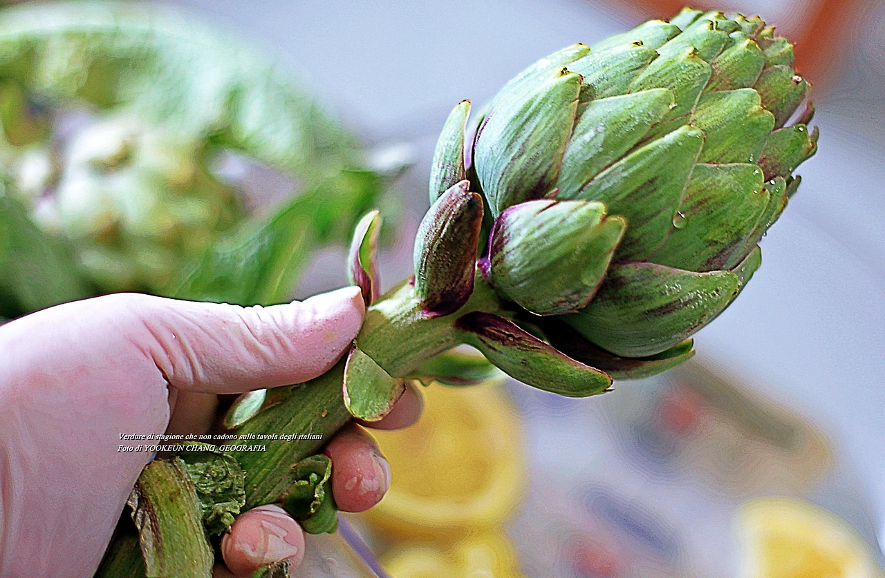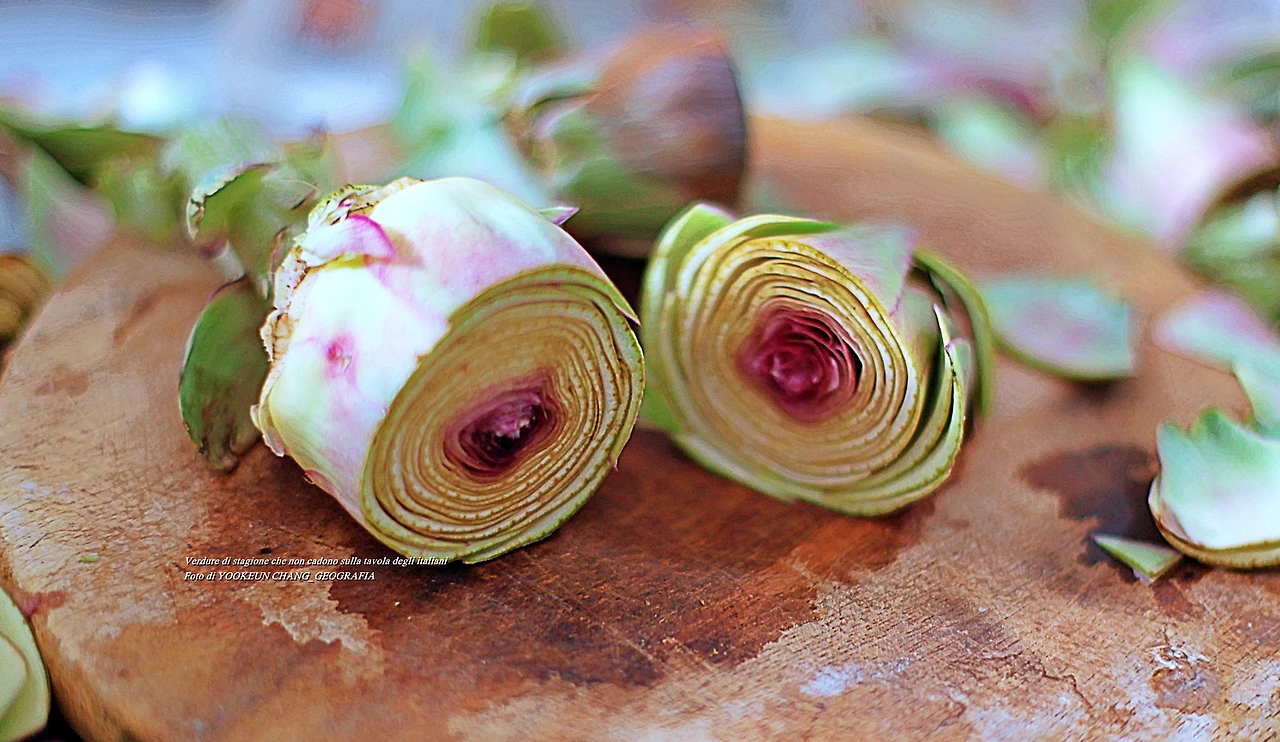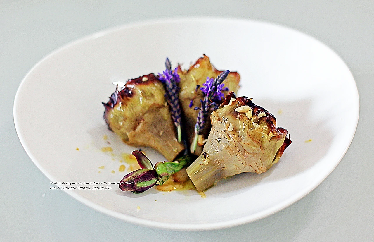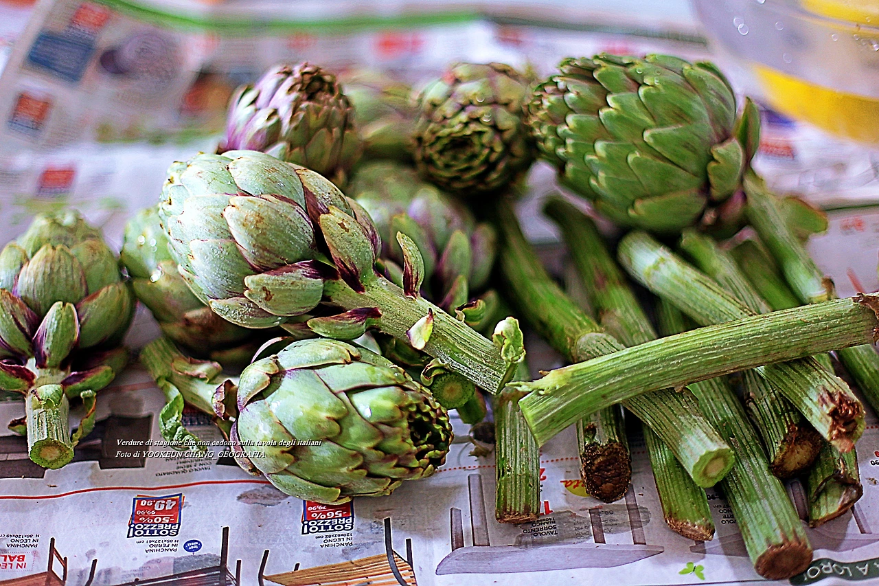 이탈리아인들이 요즘 즐겨먹는 제철 채소 까르치오피(Carciofi alla romana) 만든 요리에는 몸에 좋은 성분(항산화제, 무기질, 비타민 등)이 가득하여 천연 치료제로 알려져 있다. 이랬다.