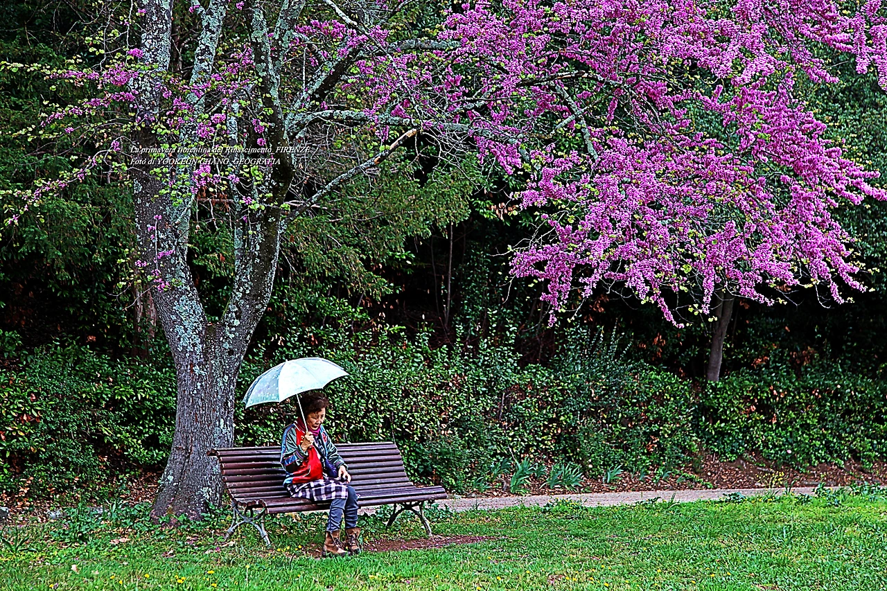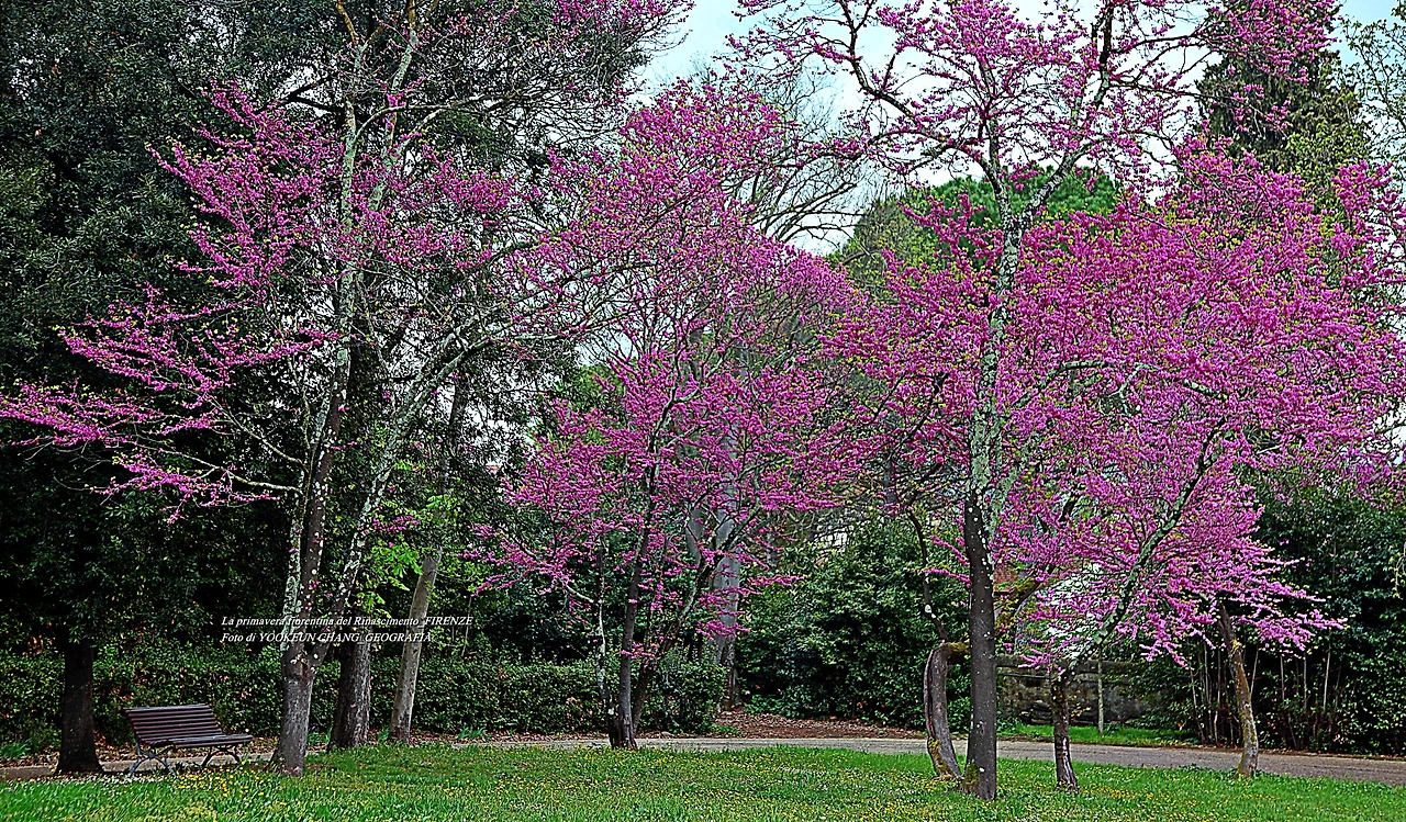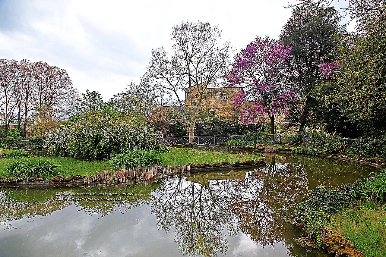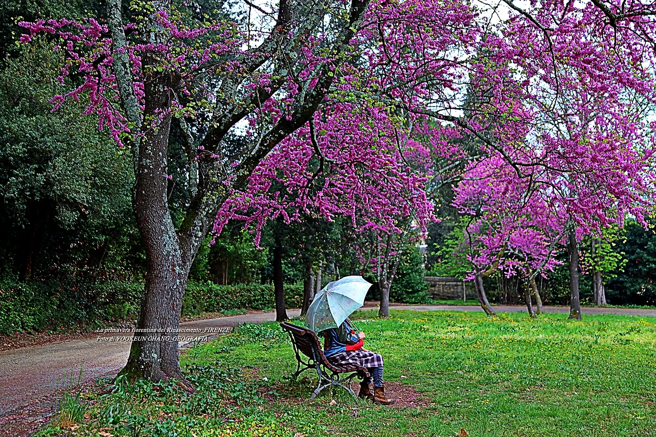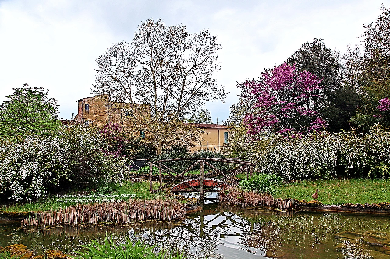 이곳에는 5헥타르에 달하는 관목과 숲이 있으며 연못과 잔디로 덮인 정원이 방문객을 편안하게 하는 곳이다. 특히 이맘때 유다 나무의 고목에서 내뿜은 붉디붉은 핏빛 꽃들은, 그야말로 환상적이어서 황홀경에 빠뜨리는 것이다. 어느 봄날, 하니와 나는 피에솔레로 목적지를 정하고 피렌체 시내 중심에서 천천히 걷다가 우연한 기회에 빌라 일 벤딸리오를 발견하게 된 것이다.