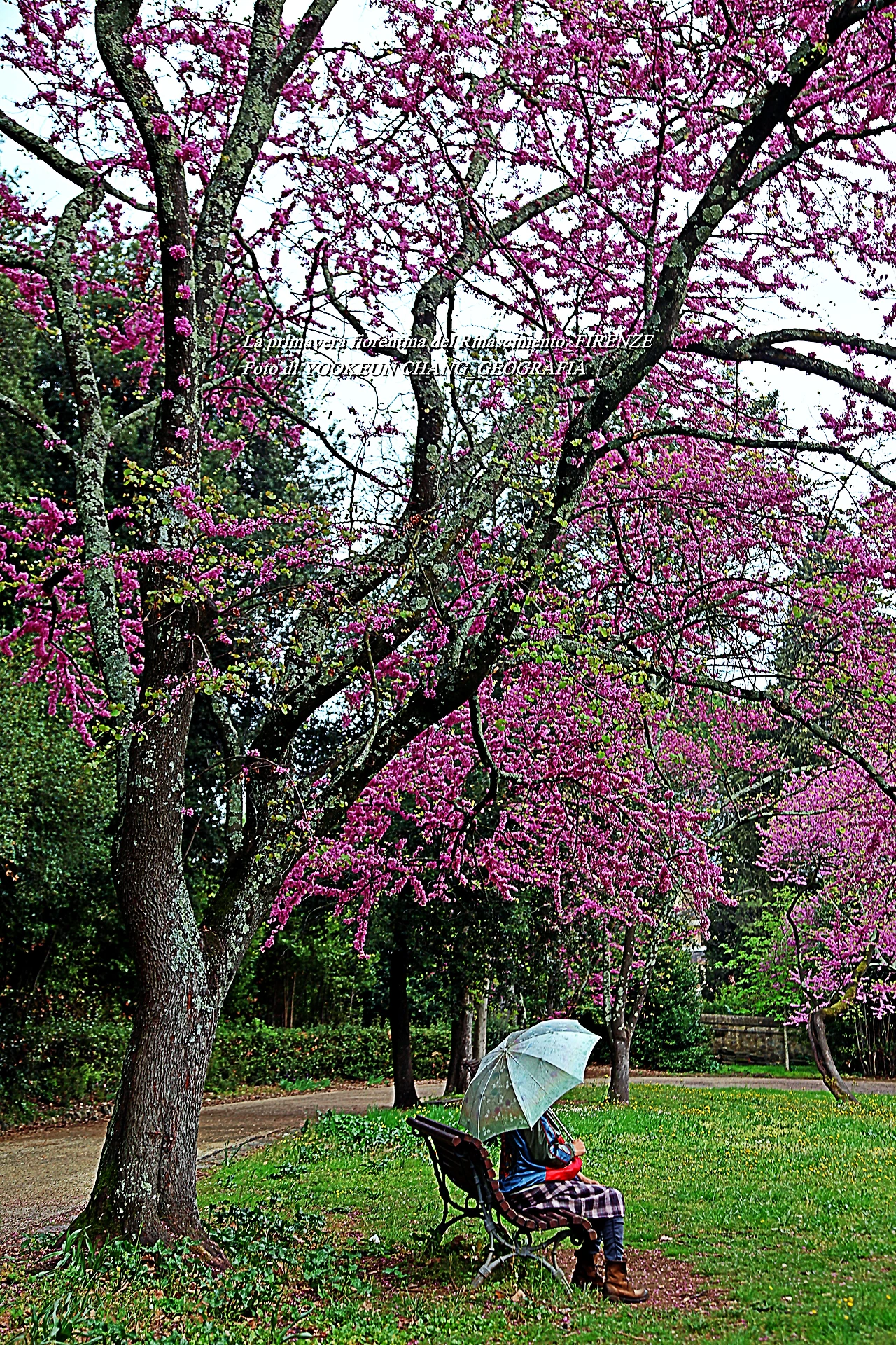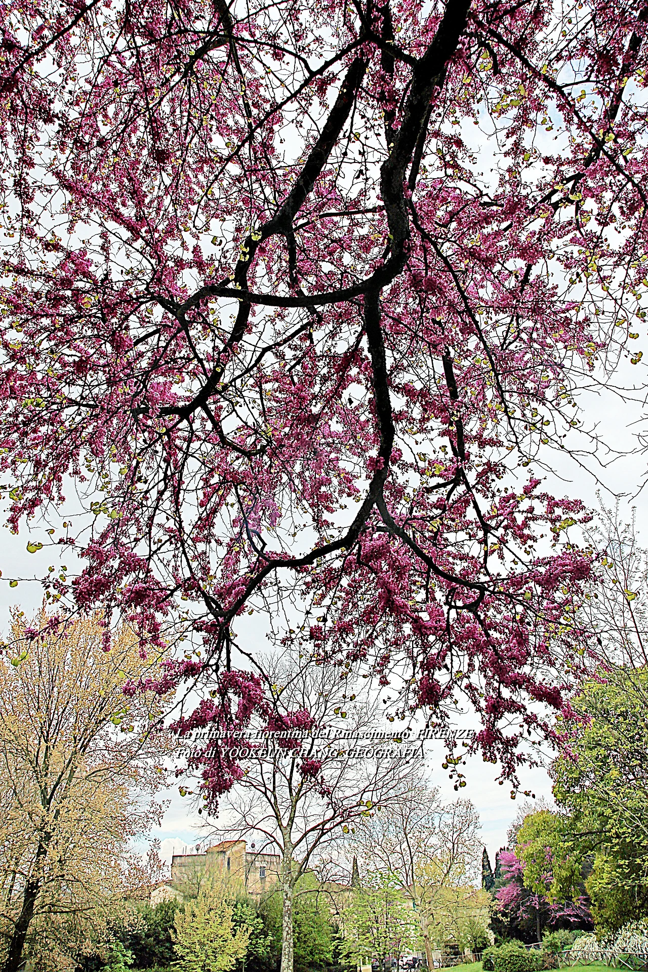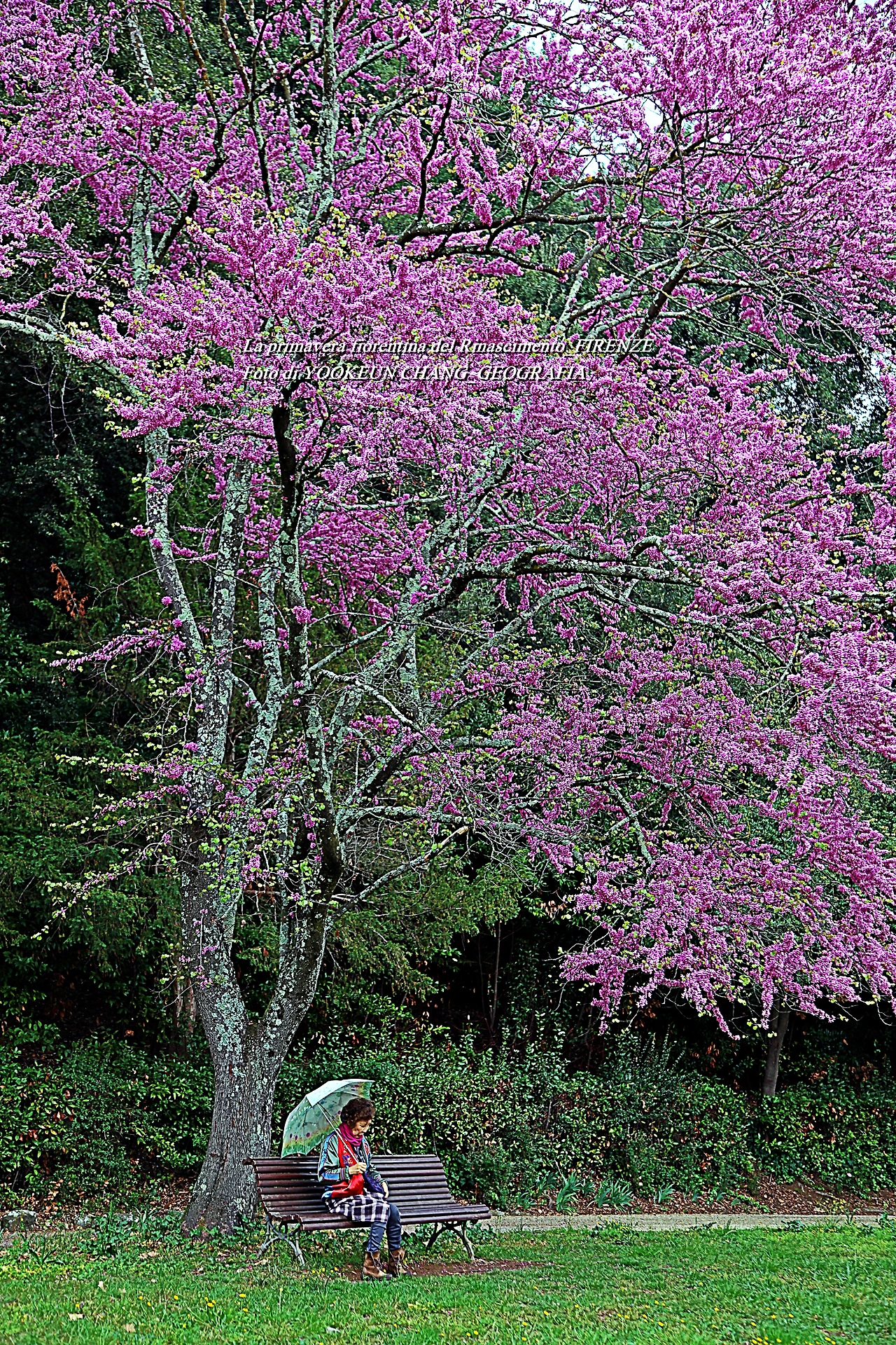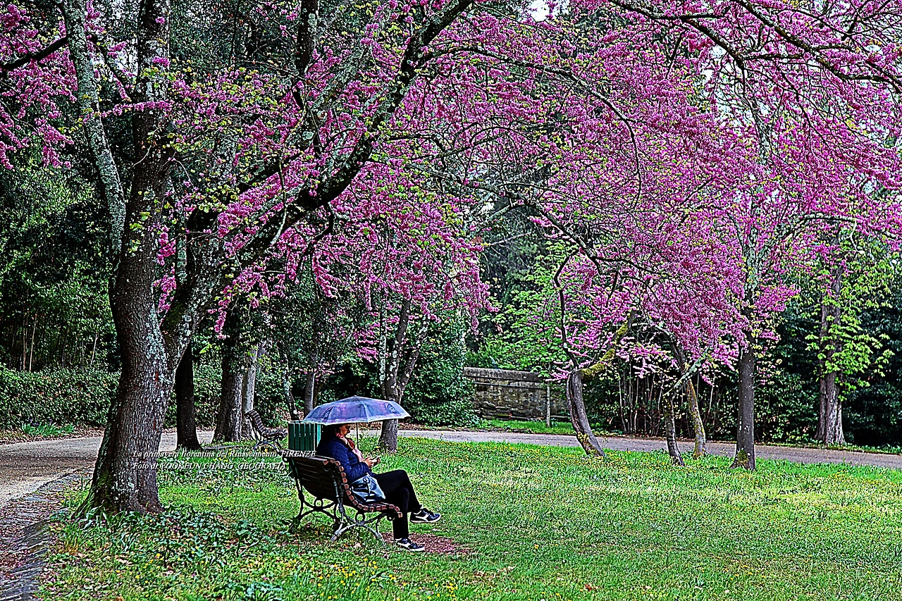 이곳에는 5헥타르에 달하는 관목과 숲이 있으며 연못과 잔디로 덮인 정원이 방문객을 편안하게 하는 곳이다. 특히 이맘때 유다 나무의 고목에서 내뿜은 붉디붉은 핏빛 꽃들은, 그야말로 환상적이어서 황홀경에 빠뜨리는 것이다. 어느 봄날, 하니와 나는 피에솔레로 목적지를 정하고 피렌체 시내 중심에서 천천히 걷다가 우연한 기회에 빌라 일 벤딸리오를 발견하게 된 것이다.