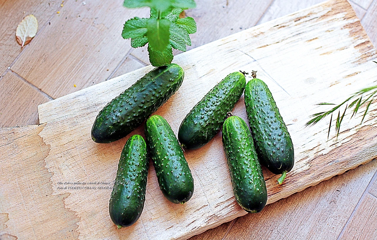 서기 2021년 5월 4일(현지시각), 내가 살고 있는 이탈리아 남부 뿔리아 주 바를레타의 아침시간은 분주했다. 이틀 전에 사 온 오이를 나의 입맛에 맞게 새롭게 요리를 하고 있는 것이다. 맨 먼저 오늘 리체타에 사용될 주인공(오이)을 소개해 드리기 위해 현관 앞에서 연출을 했다. 오이 크기는 손바닥 크기로 한 뼘 정도의 크기이며 녀석의 껍질은 까칠하다. 오이 중에는 인간들처럼 까칠한 녀석도 있는 법이다.