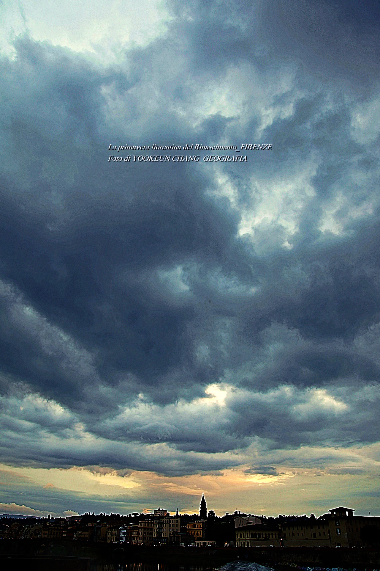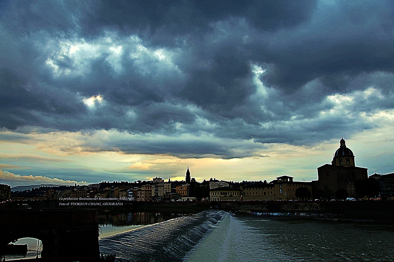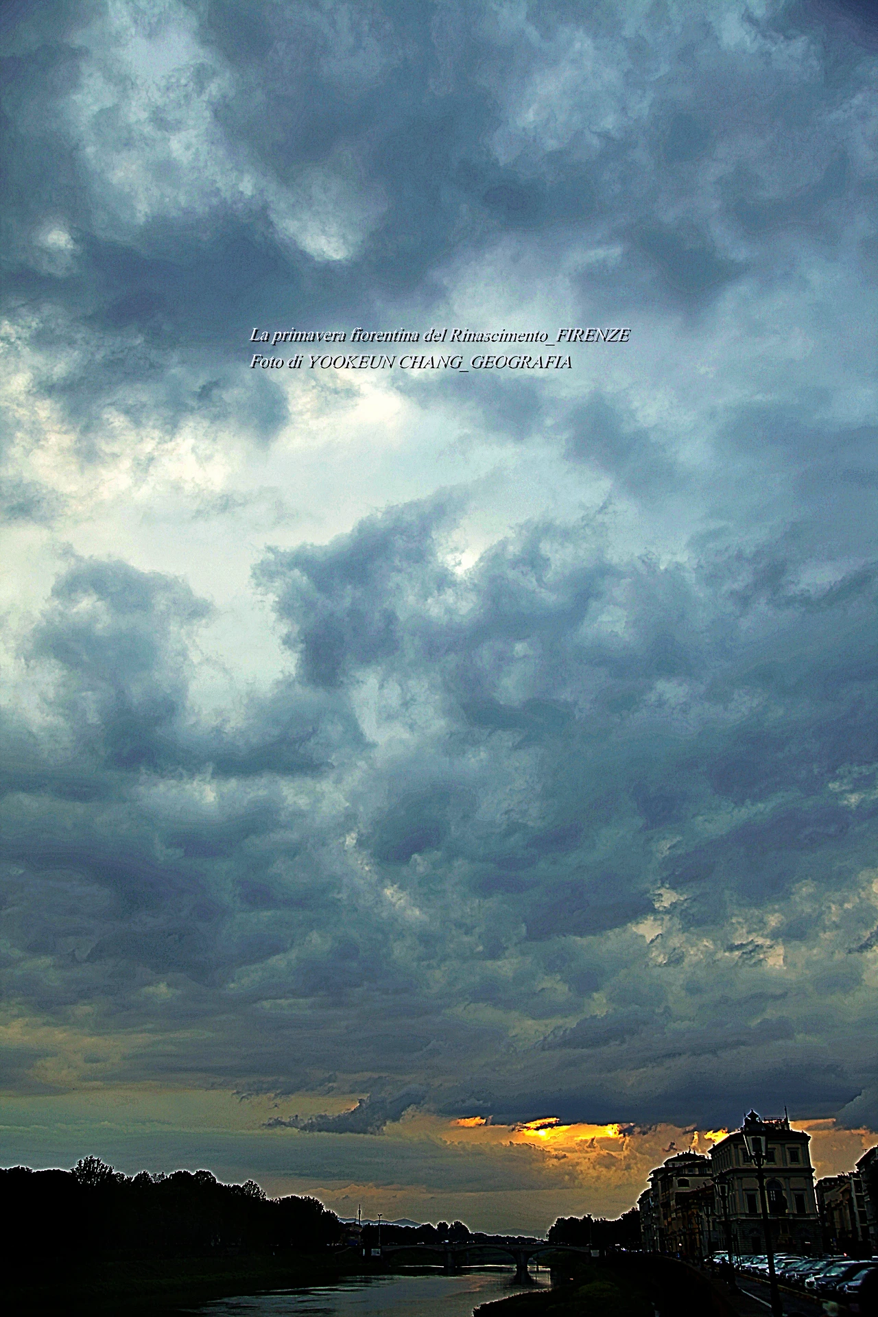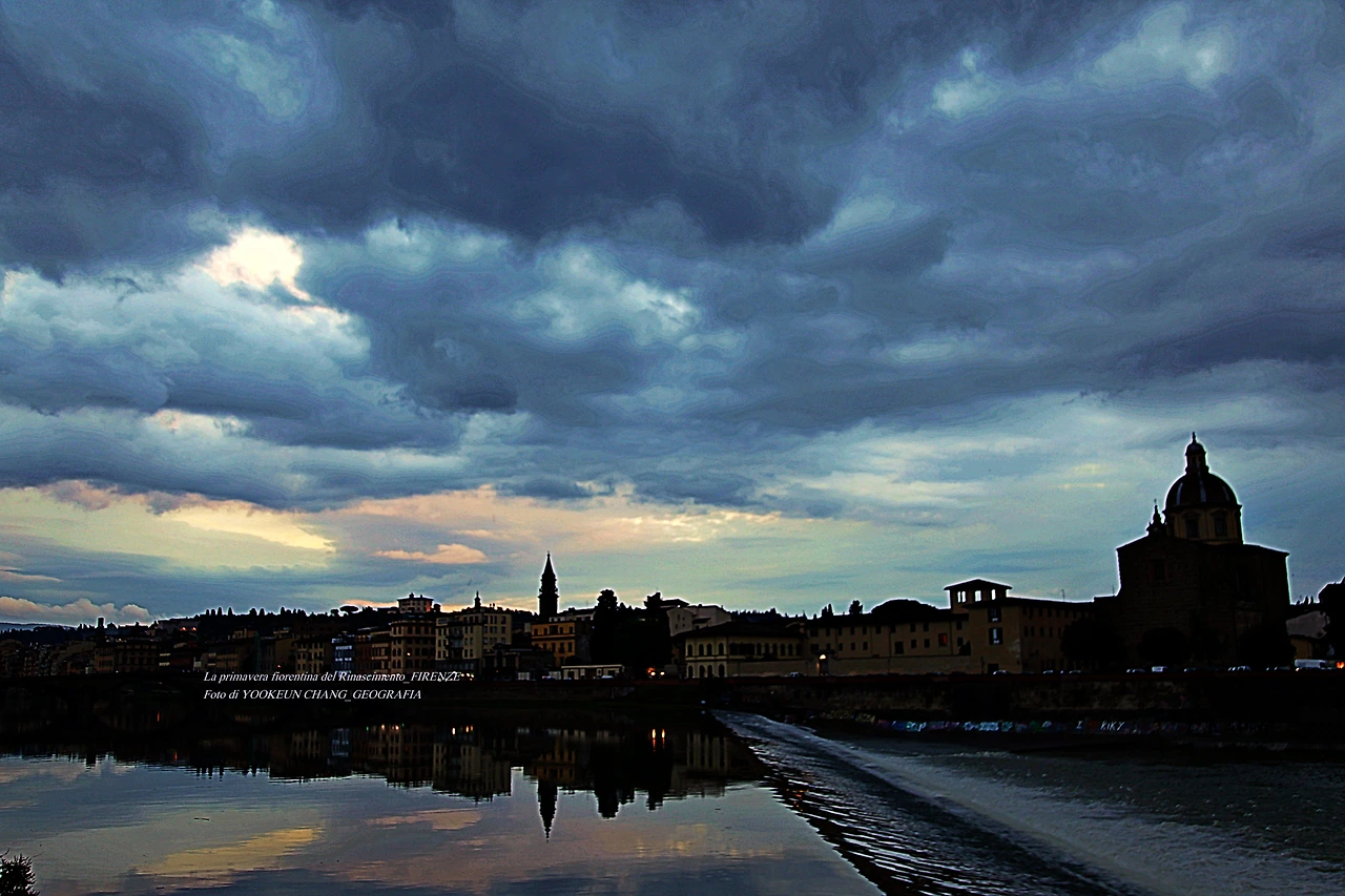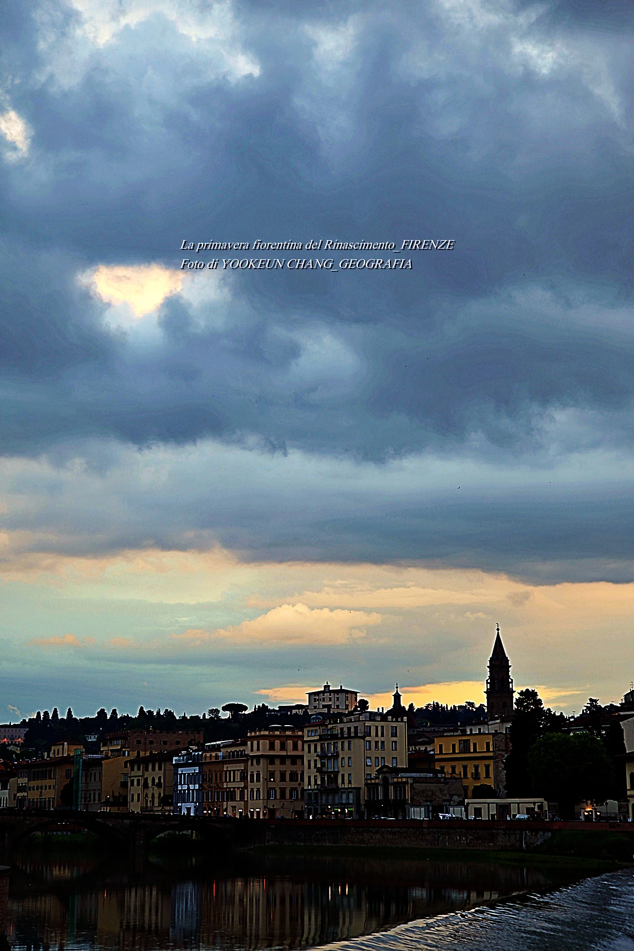 서기 2021년 5월 9일 자정(현지시각)이 넘은 시각, 노트북을 켜고 사진첩을 열어 르네상스의 고도 피렌체의 아르노 강 위에 드리워진 먹구름을 보고 있다. 나는 피렌체를 '미켈란젤로의 도시'로 고쳐 부르고 있는데 이 도시에서 당신의 이름을 지운다면 존재감이 사라질 것으로 생각한다. 피렌체는 물론 르네상스를 빛낸 가장 중요한 인물로 생각하는 것이다. 관련 포스트(미켈란젤로와 천지창조(Genesi))에 당신을 언급하며 어린 시절을 생각해 본 것이다. 피렌체의 자연현상이 당신의 영감에 영향을 미쳤을 것이라는 생각 때문이었다.
