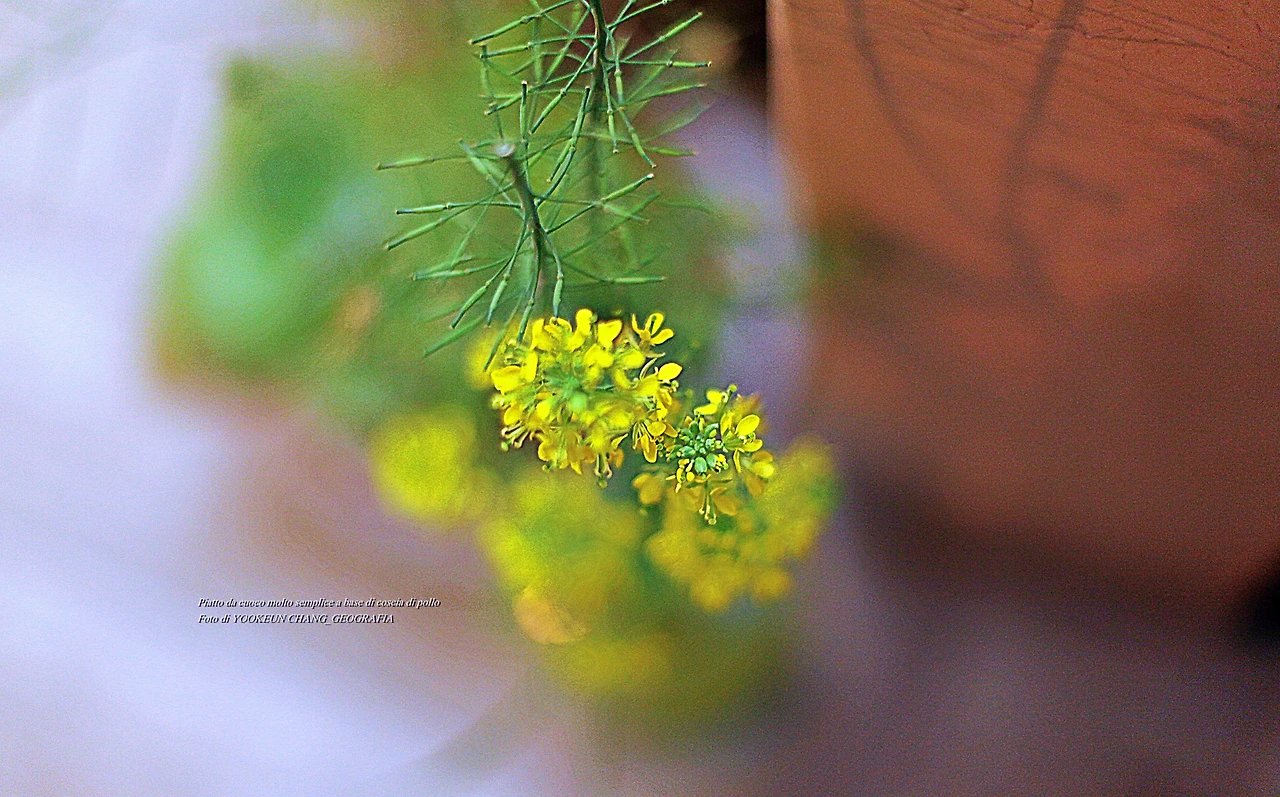 닭봉 좋아하시나요?.. 샛노랗고 앙증맞은 꽃들이 병아리를 연상케 한다. 브런치 첫 장면은 이렇게 시작한다. 샛노란 꽃의 정체는 이탈리아인들이 즐겨 먹는 제철 채소 치메 디 라파(Cime di rapa)로 끝물이다. 내가 살고 있는 이탈리아 남부 뿔리아 주 바를레타의 재래시장에는 어느덧 햇과일이 출하되고 있는 것이다. 채소 출하가 한창일 때 자주 먹은 이 채소의 꽃대를 잘라, 큼직한 페트병에 담아두었더니 여전히 꽃을 피우는 것이다.