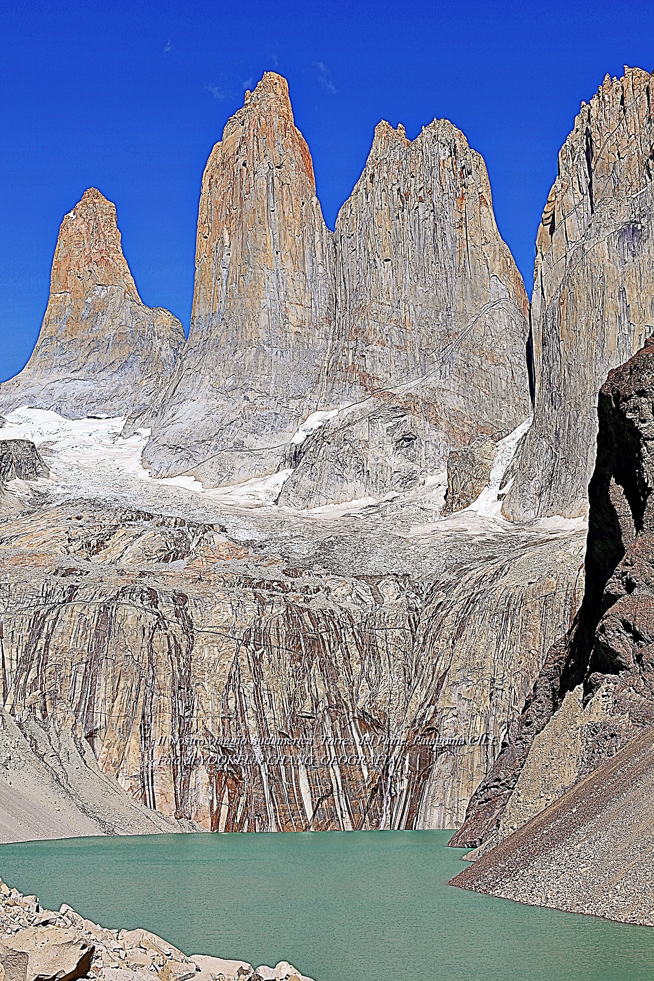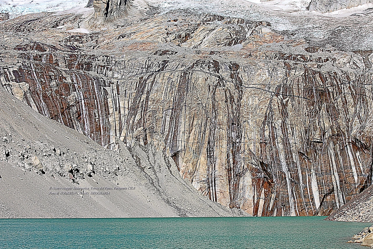 만년설로 뒤덮인 또레스 델 빠이네 정상에서 흘러내린 물이 호수를 이룬다.
