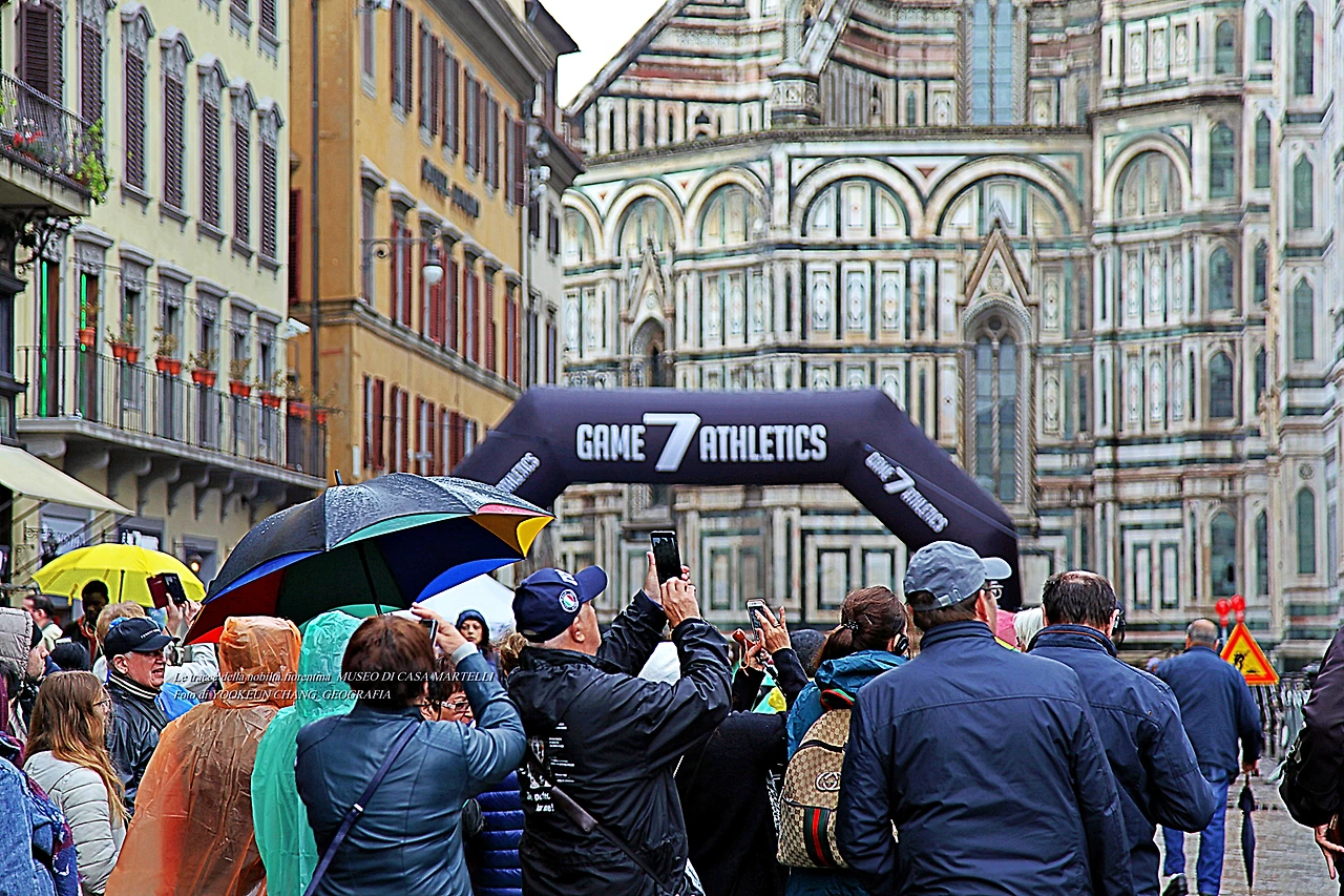 보슬비가 보슬 부슬 내리는 가운데 사람들이 우비를 챙겨 입고 바라보는 곳은 피렌체의 두오모(Cattedrale di Santa Maria del Fiore) 앞이다. 바로 곁에는 세례당(Battistero di San Giovanni)이 위치해 있는 곳이다. 피렌체를 찾는 세계인들이 반드시 거쳐가는 곳이자 이곳에 오면 기념사진 찍기에 바쁘다. 평생을 통틀어 한 번 가 볼 수 있을까 말까 한 역사적인 장소이므로 누구든지 이곳에 발을 디디면 기록을 남기는 것이다.
