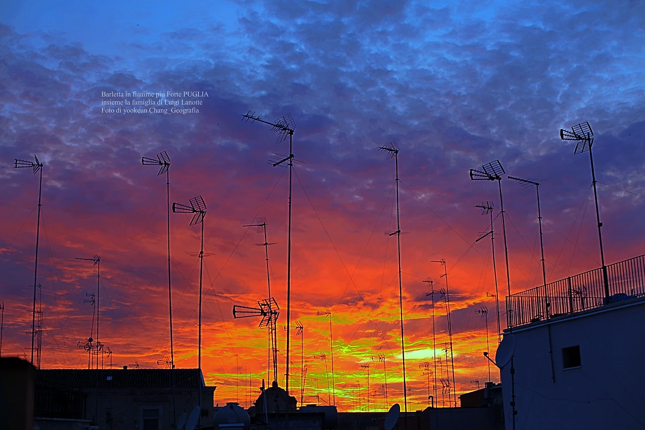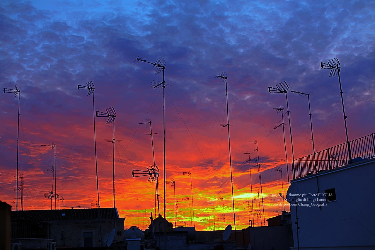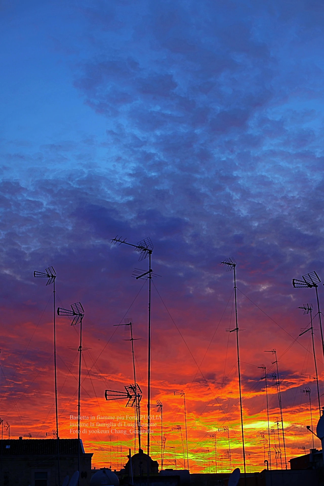 그리고 손님들이 오기 전 루이지의 스튜디오 옥상에 올라 일몰을 바라보니 마치 우리의 여행을 축복하는 하늘의 잔치처럼 보였다고나 할까. 그야말로 환상적인 일몰 앞에서 화들짝 반하여 셔터를 마구 눌러댓다. 그동안 루이지의 가족들은 옥상 위의 나를 바라보며 "뭐가 그리 놀라운 것인지" 하는 모습들. 그들은 이곳에서 불타는 일몰을 자주 목격했을지 모르겠지만 내게는 너무도 새로운 현상이었다. 일몰을 처음 보는 것도 아니지만 이토록 격렬한 일몰은 보지 못했다. 화들짝 반한 그야말로 환상적인 일몰이었다.