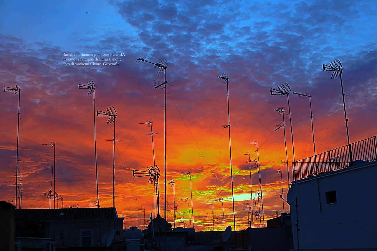 위 자료사진은 불타는 일몰이 나타나기 전 한낮의 풍경이며 티브이 안테나가 인상적이다.