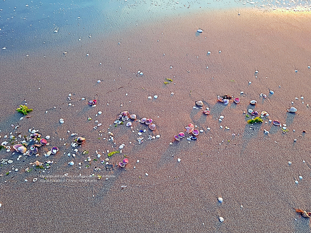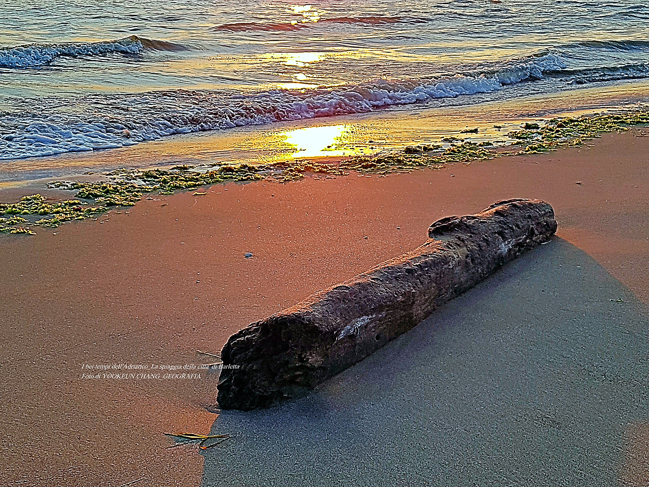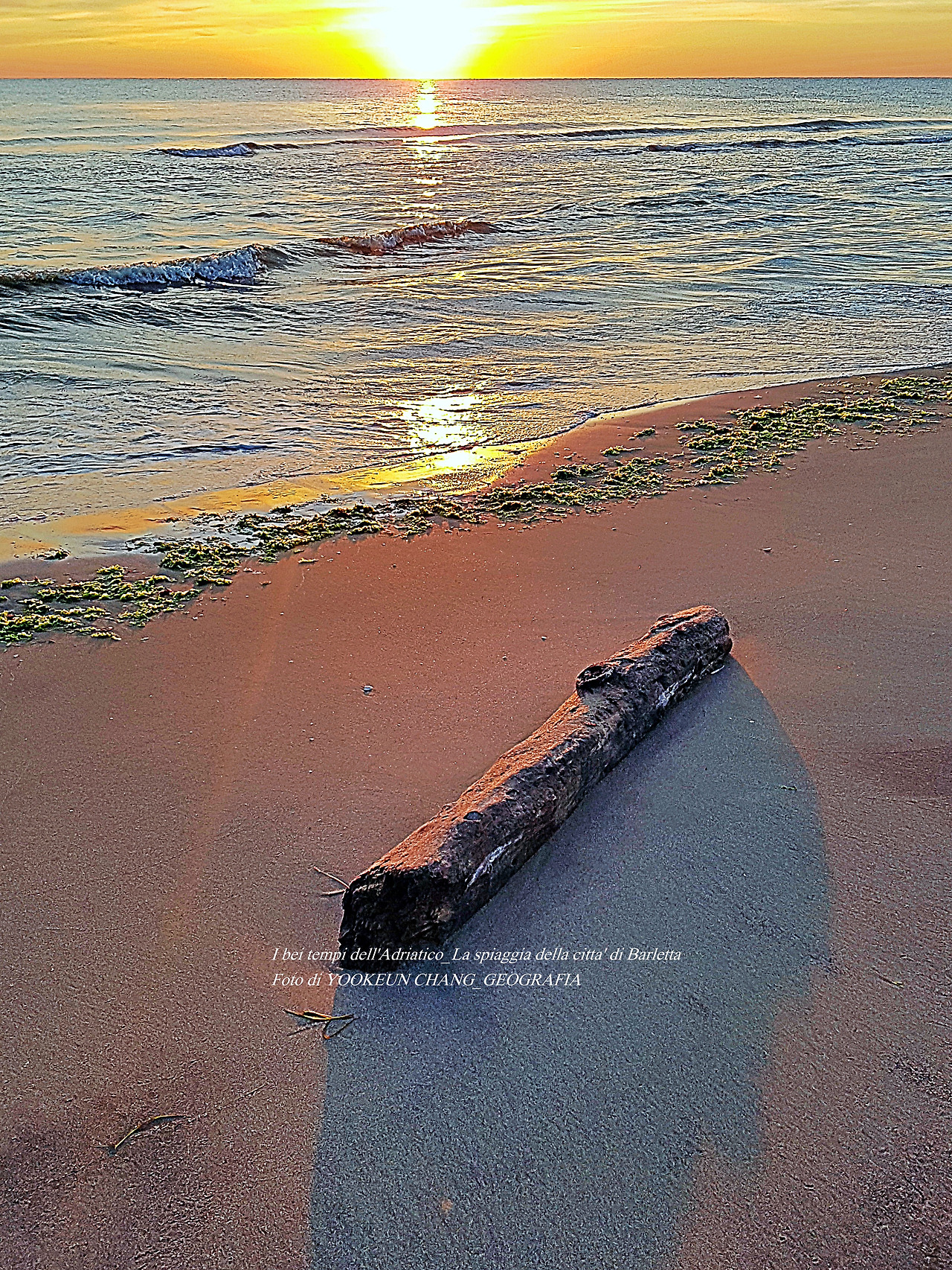 조가비 껍질이 해돋이에 반짝 거리는 풍경이 요즘 내가 즐기는 사색의 한 장면이다. 이탈리아 남부 뿔리아 주 바를레타의 바닷가는 매일 아침 나에게 아름다운 시간을 선물하는 것이다. 눈에 보이지도 않고 맛도 없으며 들을 수도 없고.. 그리고 향기도 없는 시간들. 인간의 오감이 결코 눈치채지 못하는 시간이 박제된 현장.. 해돋이는 삶과 죽음은 물론 시간 저편의 일 조차 한 공간에 머물게 하는 것이다. 다만 우리가 남긴 작은 흔적이 바닷가에서 뒹굴 뿐이었다. 시간이 유일하게 말을 건네는 현장..